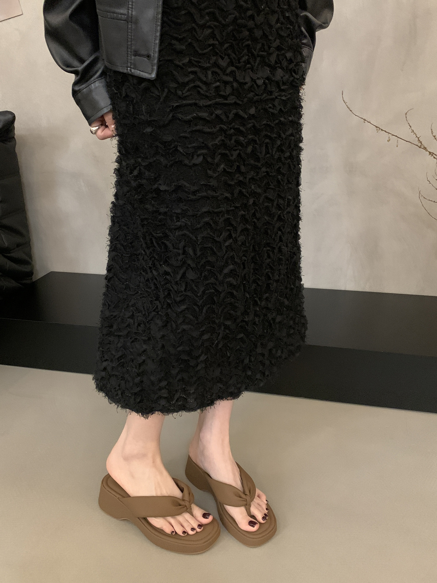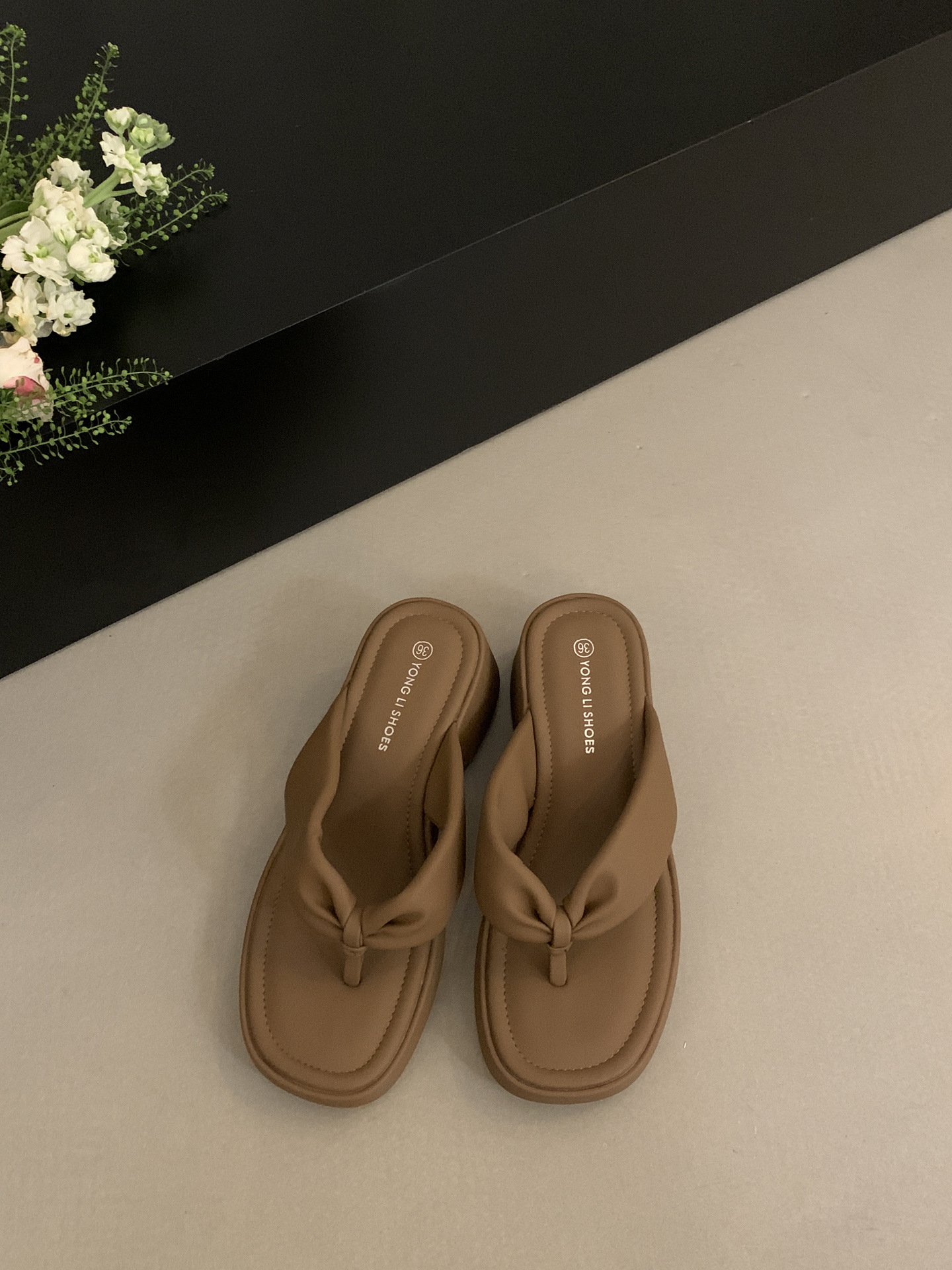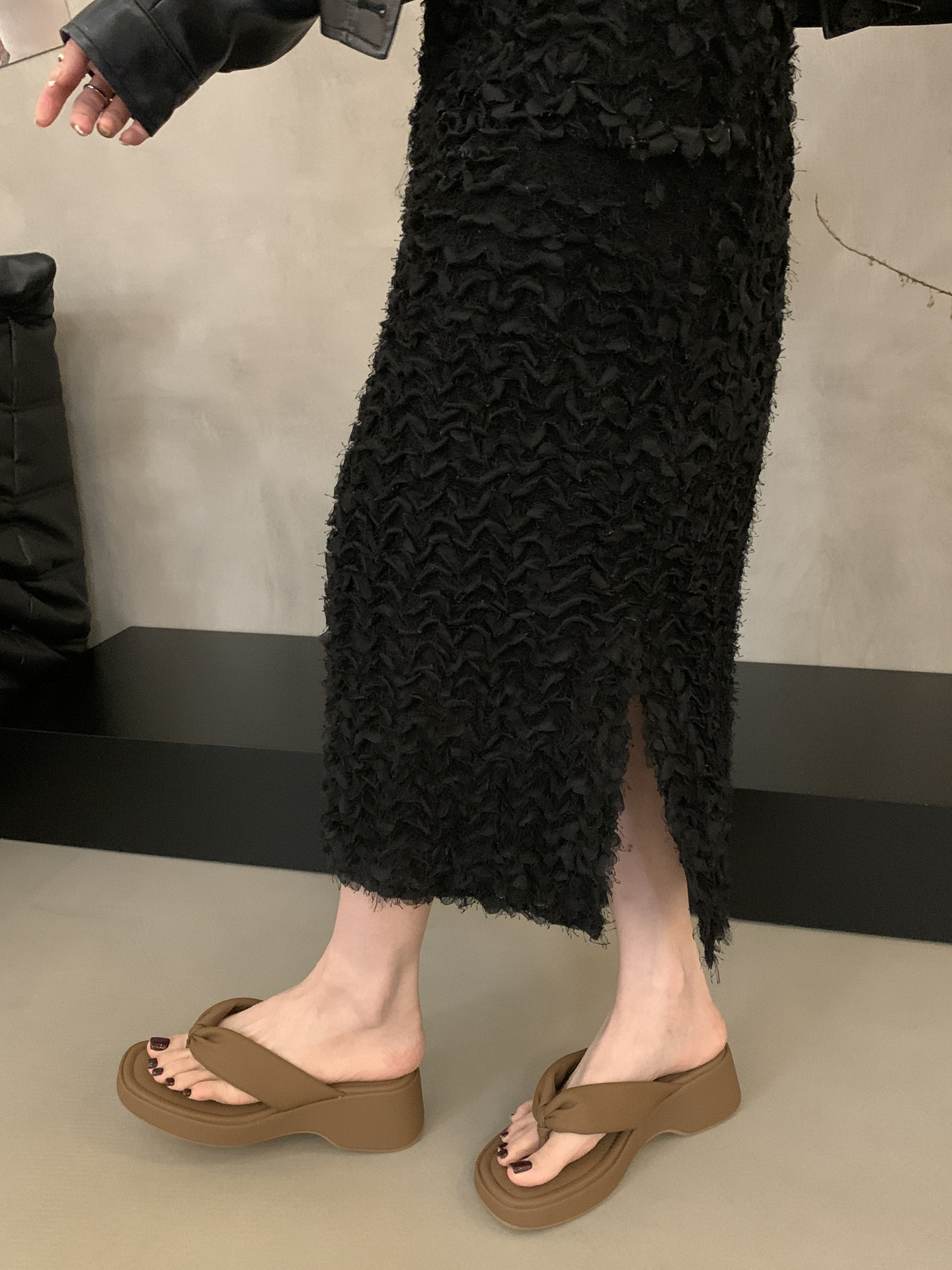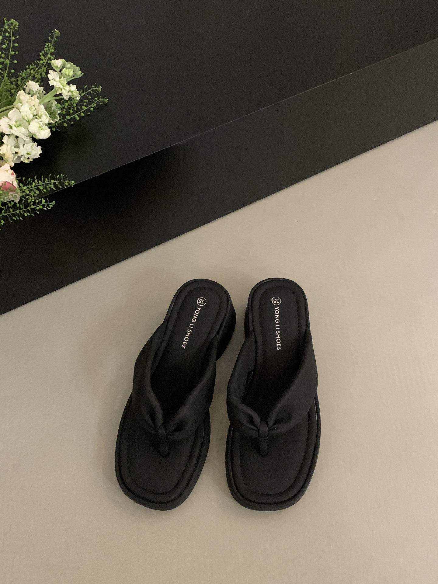 여름 아우터로 입기 좋은 여성용 작은 두꺼운 밑창 슬리퍼 2025 신형 해변 비치 슈즈 키높이 슬리퍼스토어 가기