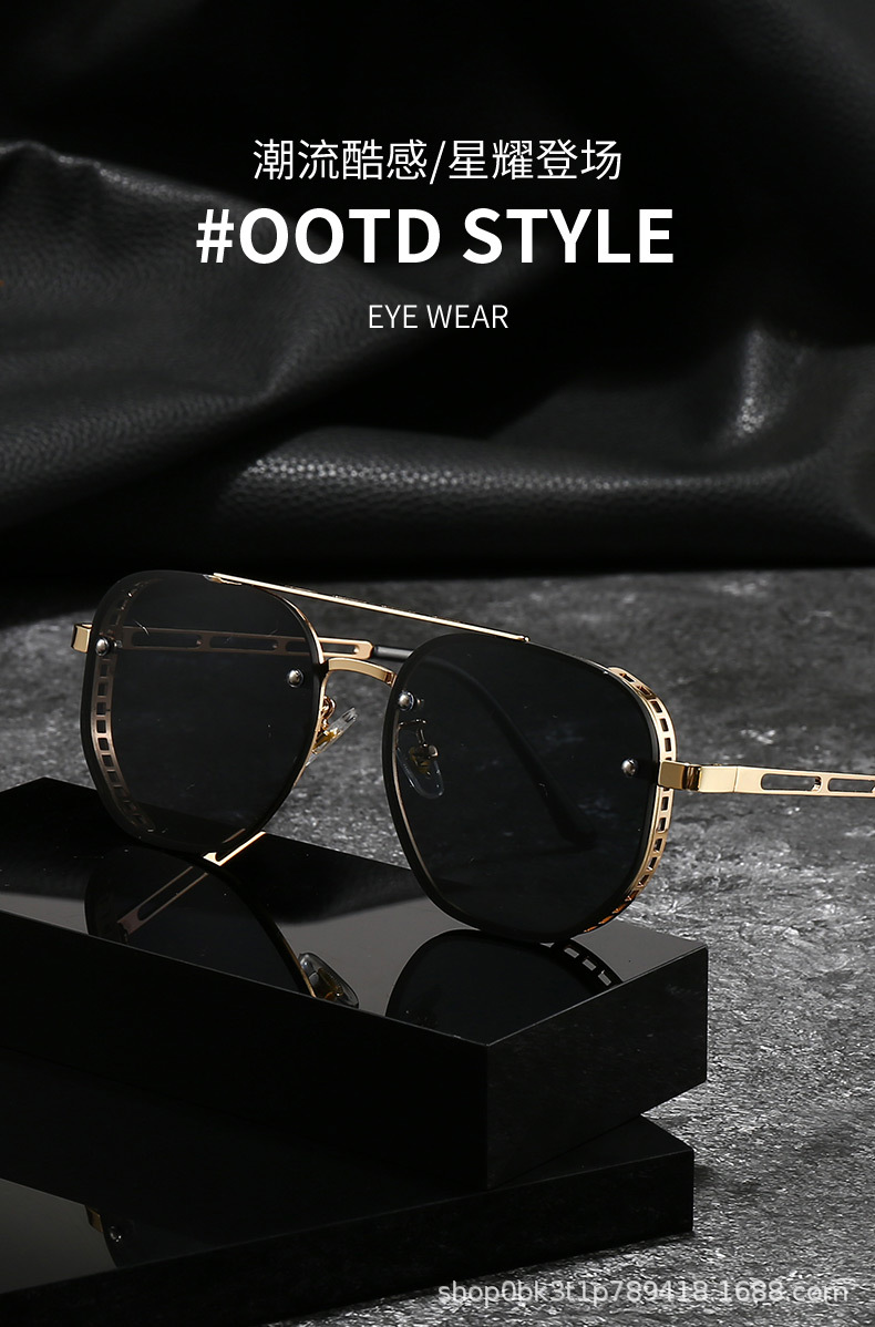 2025 새로운 금속 중공 안경다리 스팀펑크 선글라스 남성 복고풍 고급 유럽과 미국의 국경 간 선글라스스토어 가기