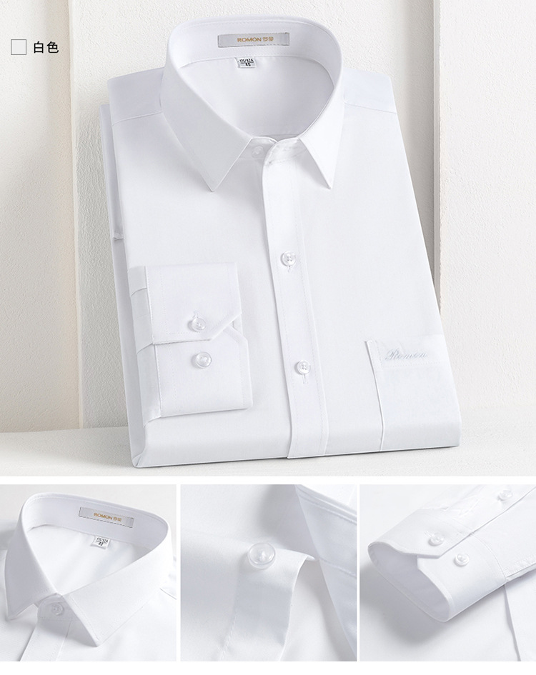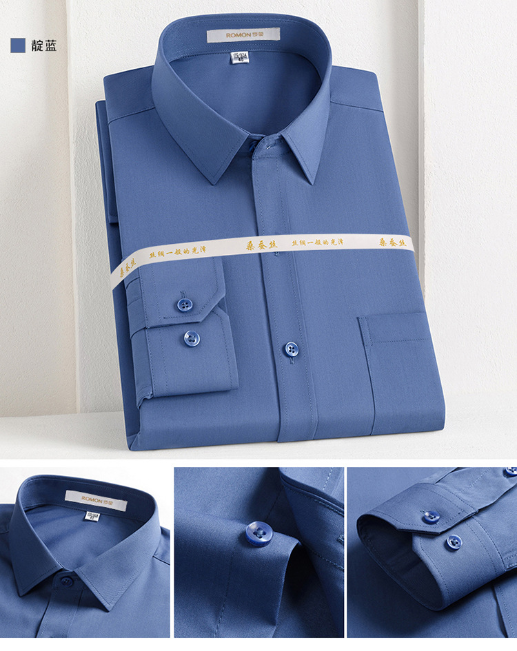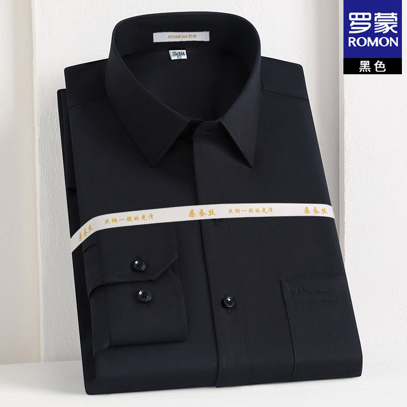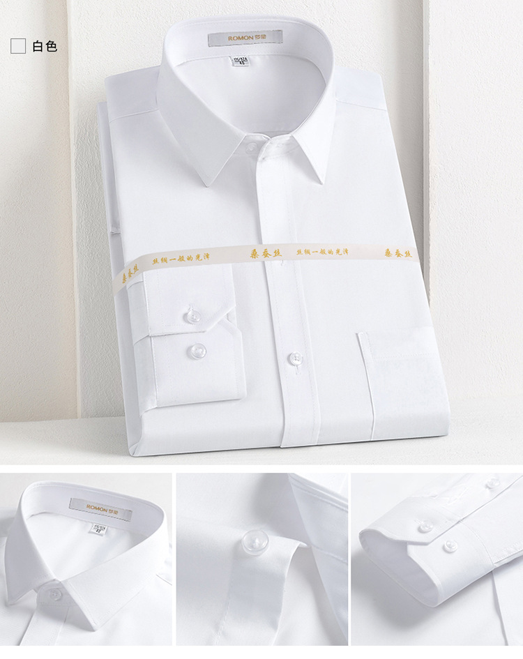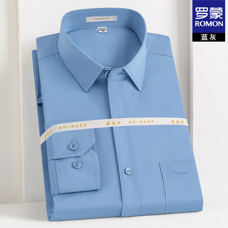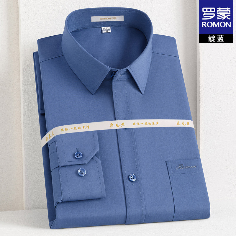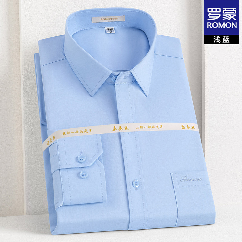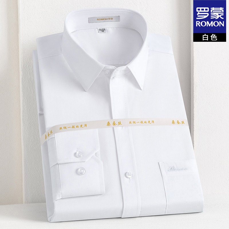 Romon Mulberry 실크 긴팔 셔츠 남성 비즈니스 노아이론 작업 플러스 사이즈 브랜드 자수 포켓 화이트 셔츠 정장스토어 가기