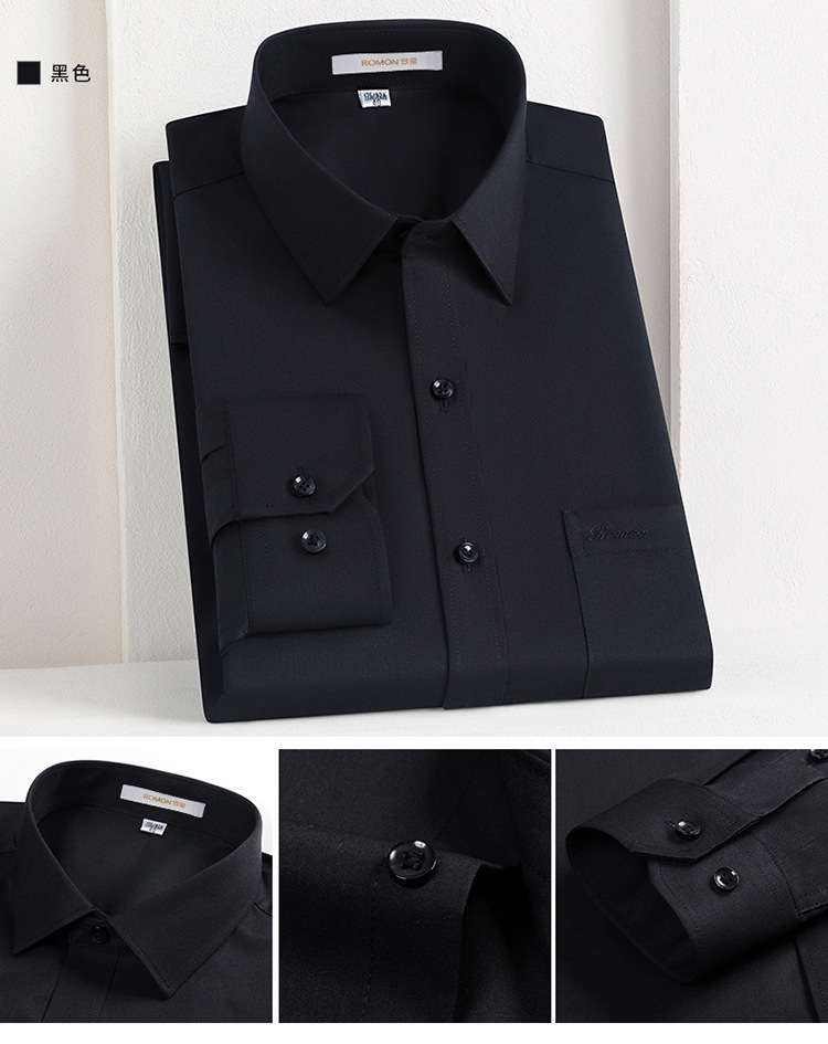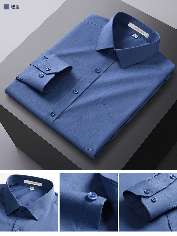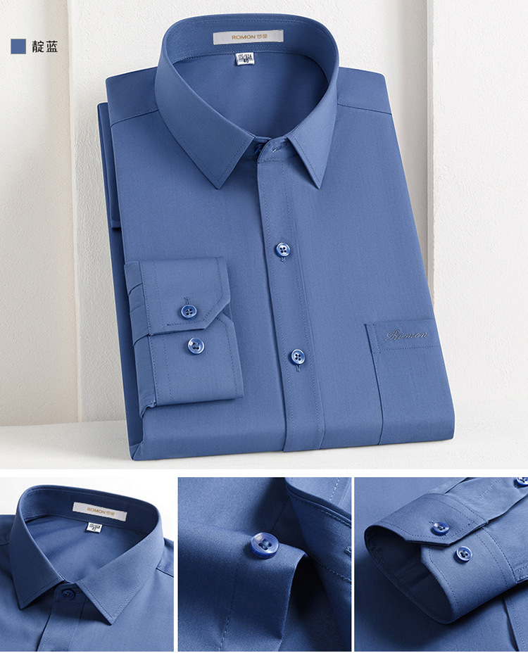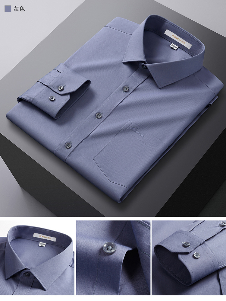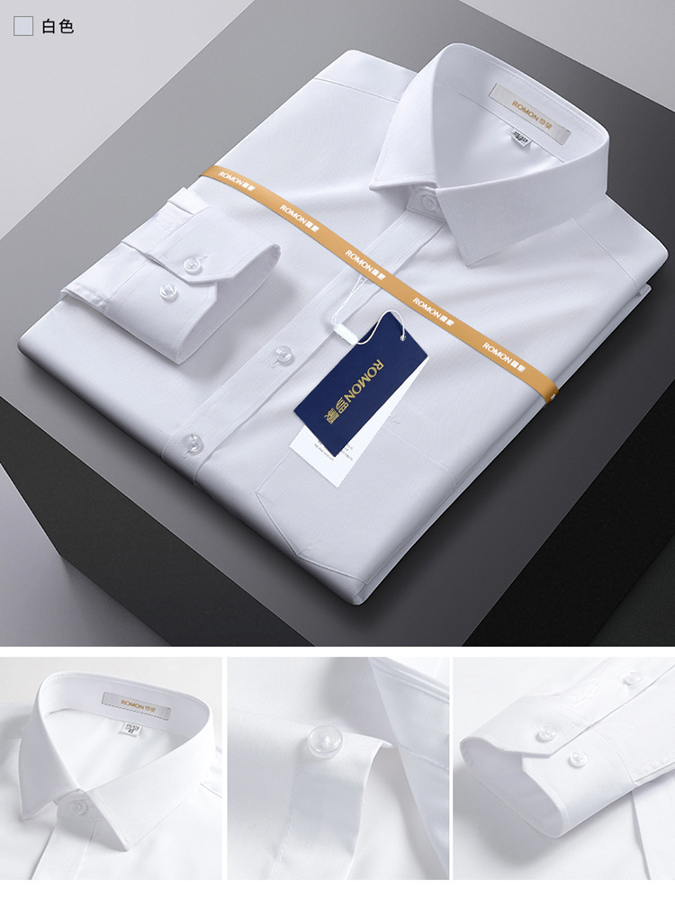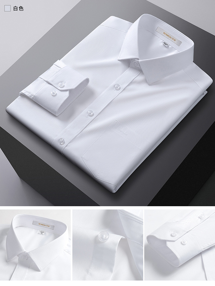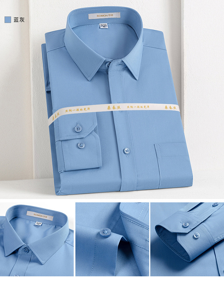 Romon Mulberry 실크 긴팔 셔츠 남성 비즈니스 노아이론 작업 플러스 사이즈 브랜드 자수 포켓 화이트 셔츠 정장스토어 가기