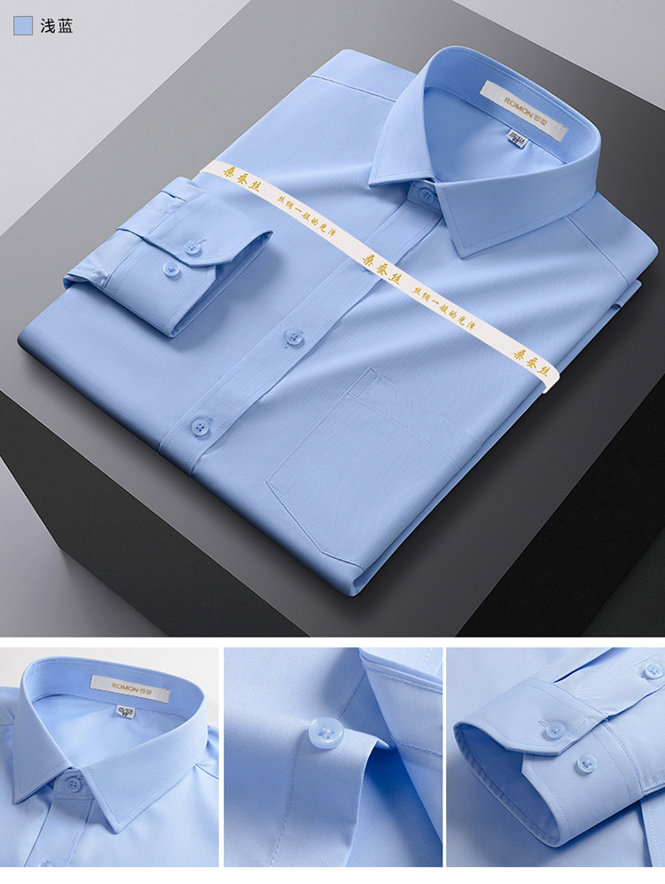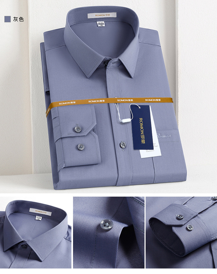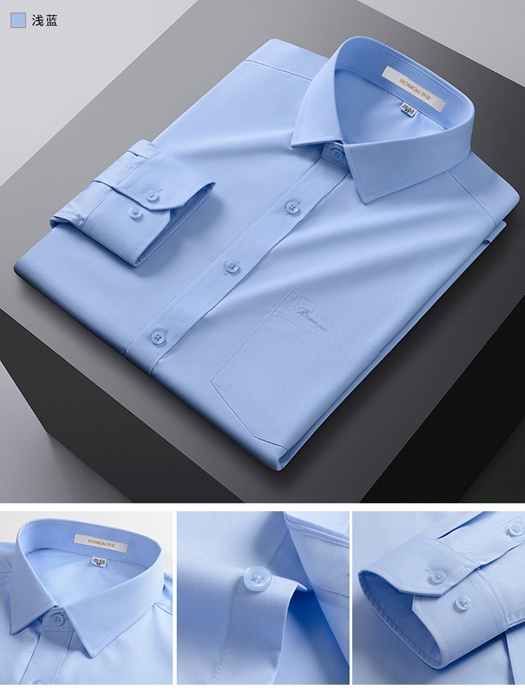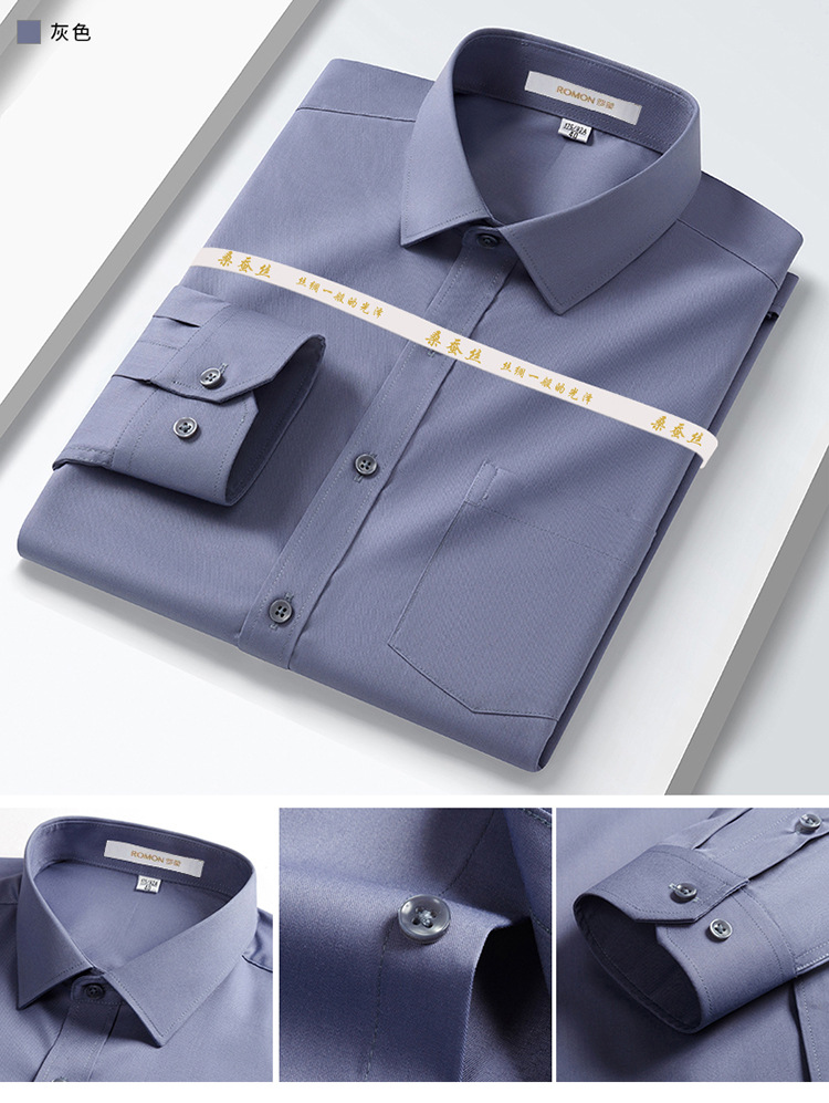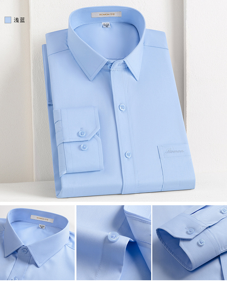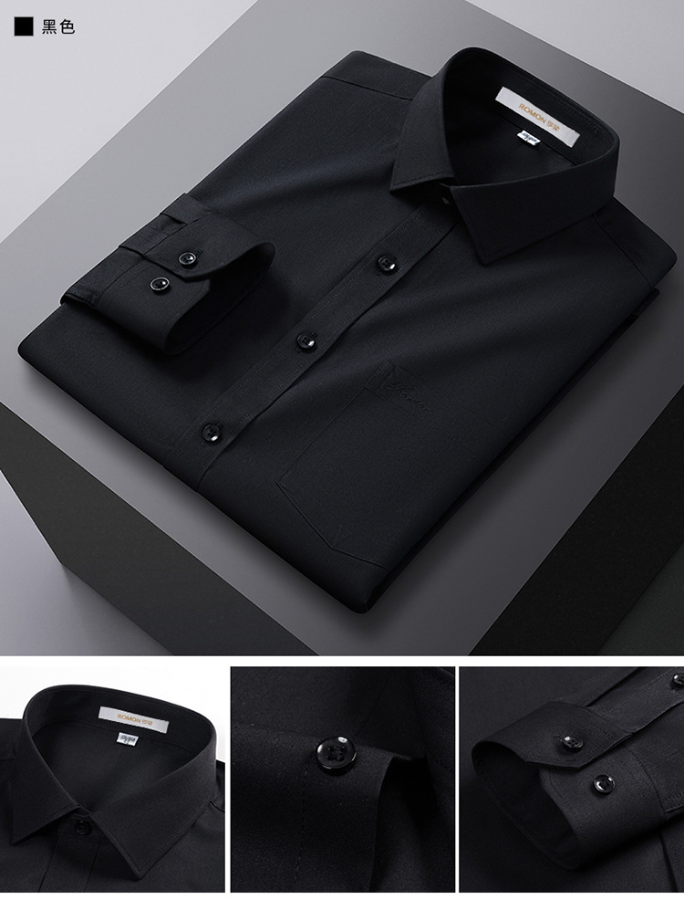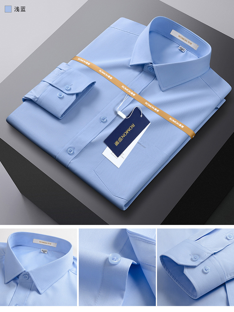 Romon Mulberry 실크 긴팔 셔츠 남성 비즈니스 노아이론 작업 플러스 사이즈 브랜드 자수 포켓 화이트 셔츠 정장스토어 가기