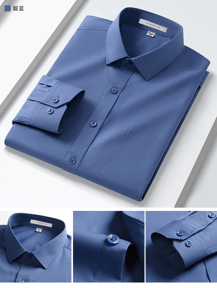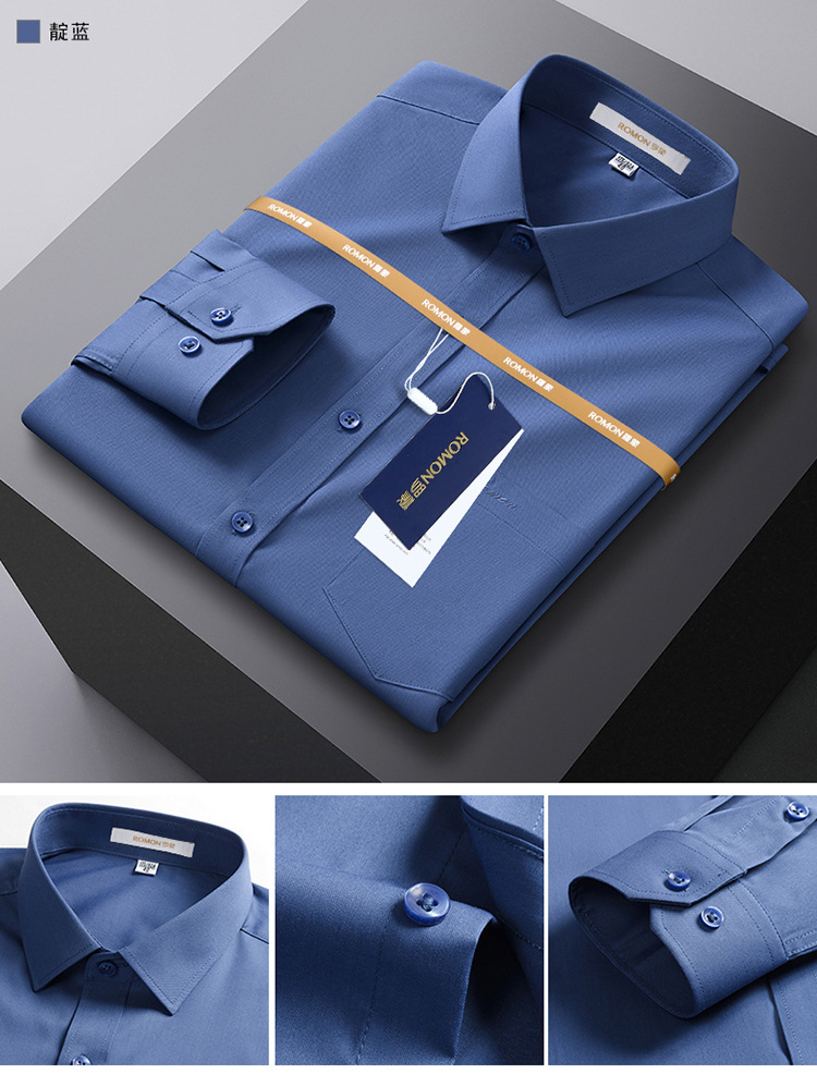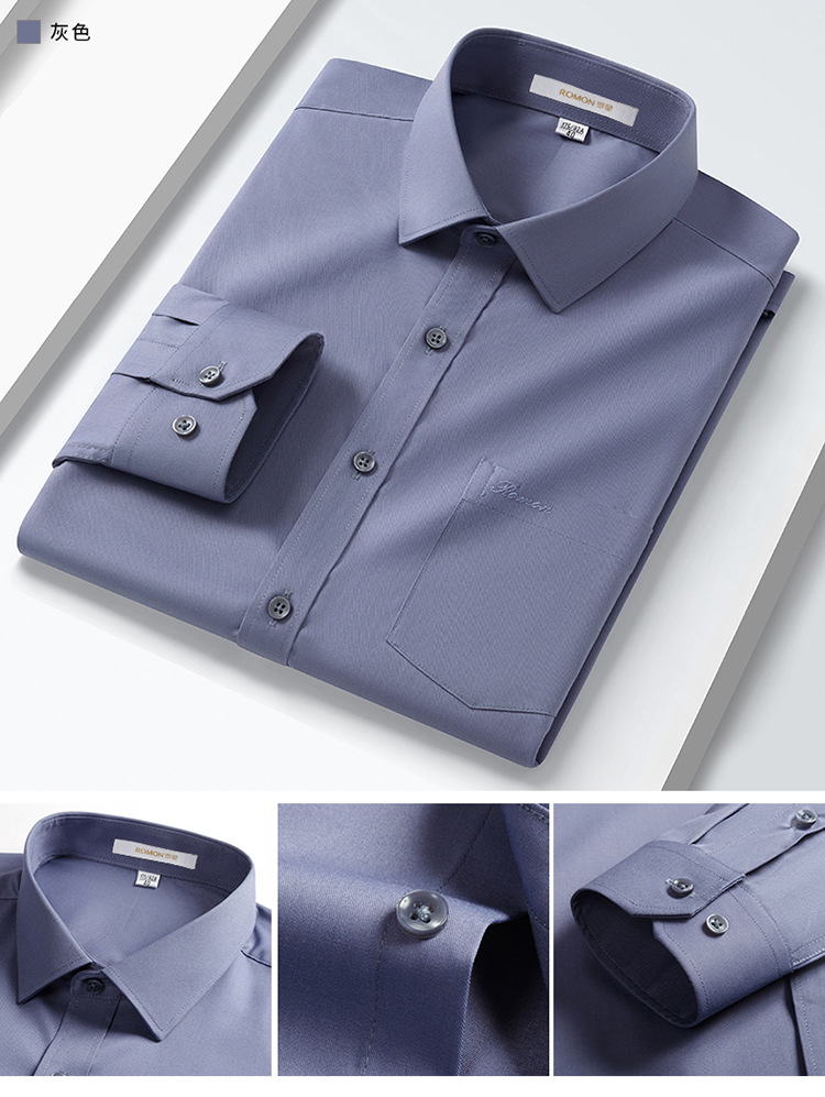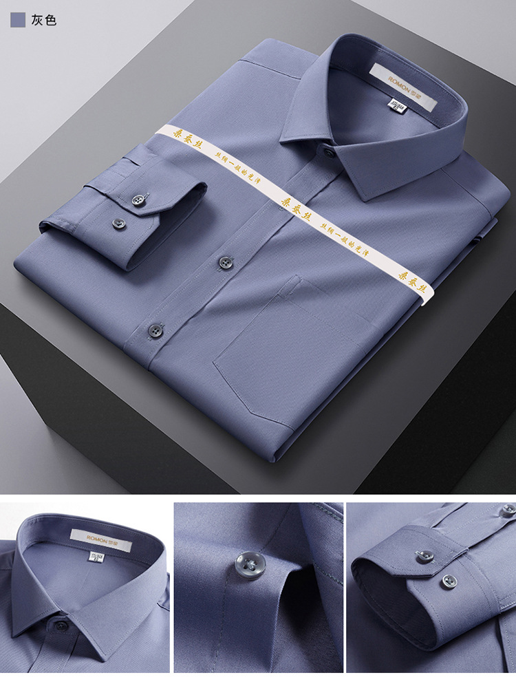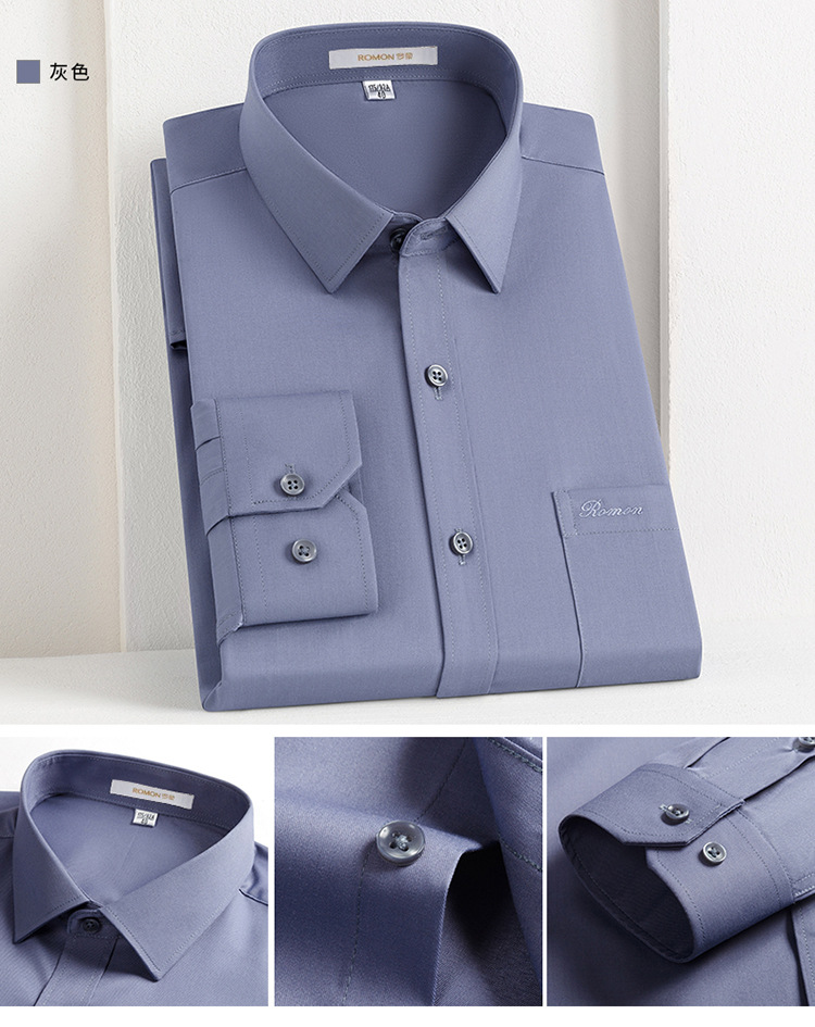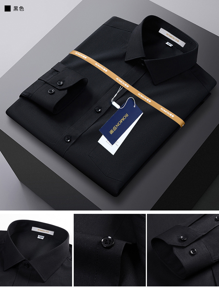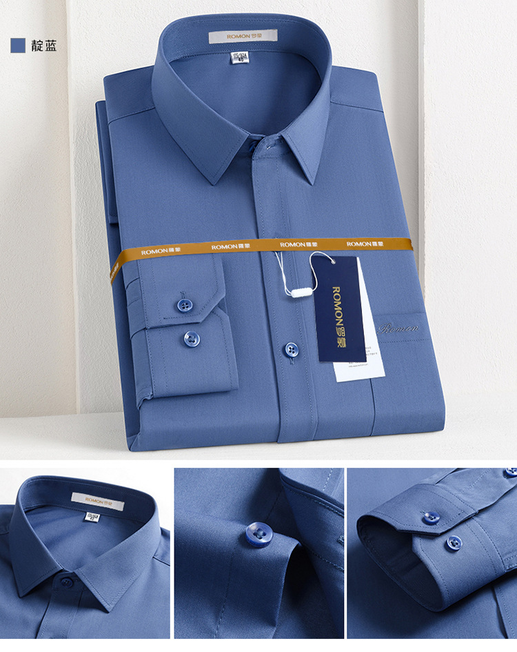 Romon Mulberry 실크 긴팔 셔츠 남성 비즈니스 노아이론 작업 플러스 사이즈 브랜드 자수 포켓 화이트 셔츠 정장스토어 가기