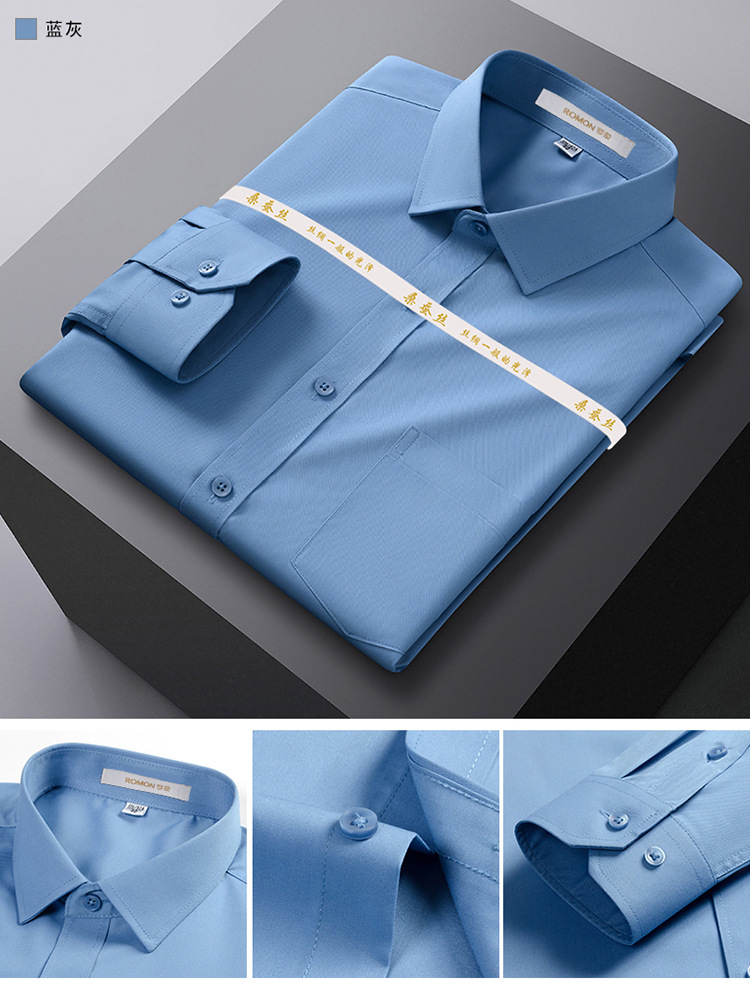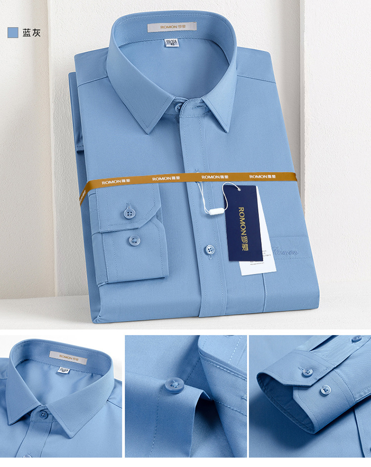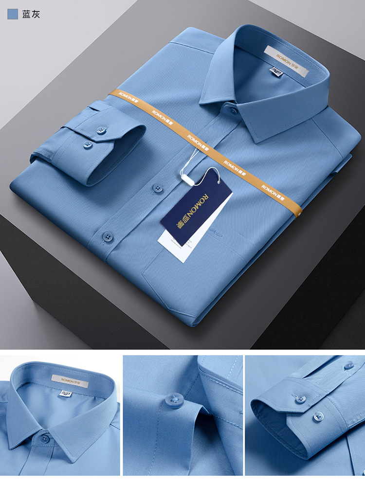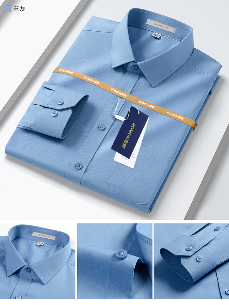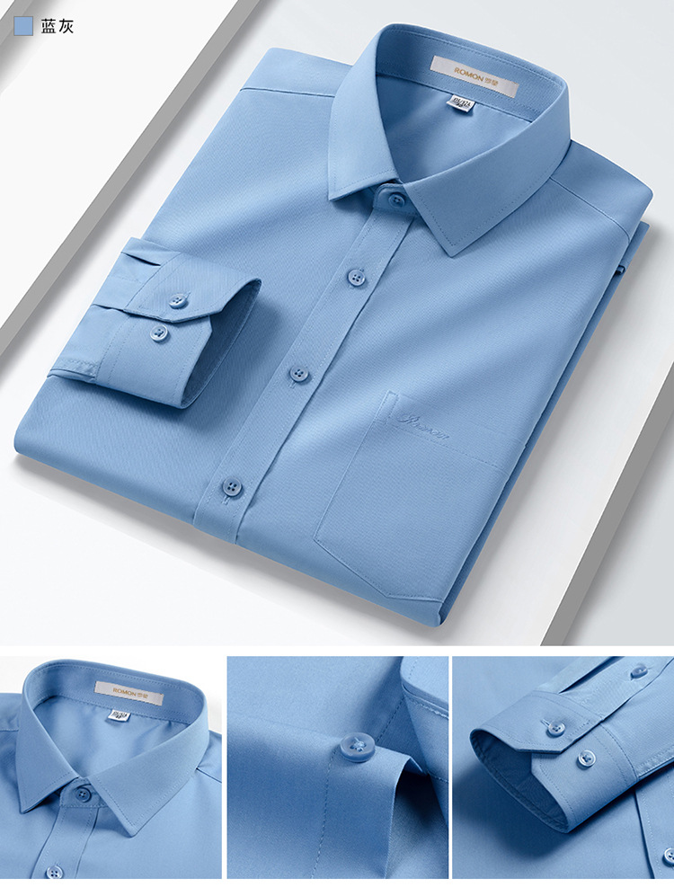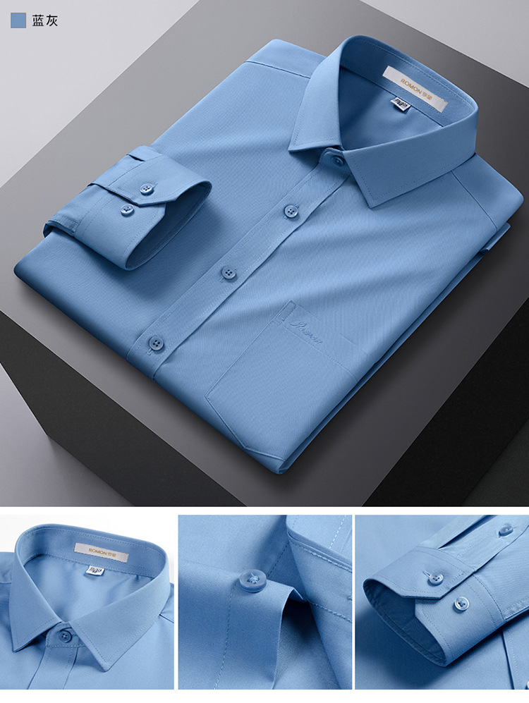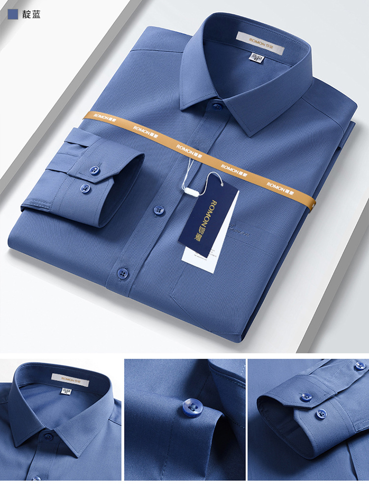 Romon Mulberry 실크 긴팔 셔츠 남성 비즈니스 노아이론 작업 플러스 사이즈 브랜드 자수 포켓 화이트 셔츠 정장스토어 가기