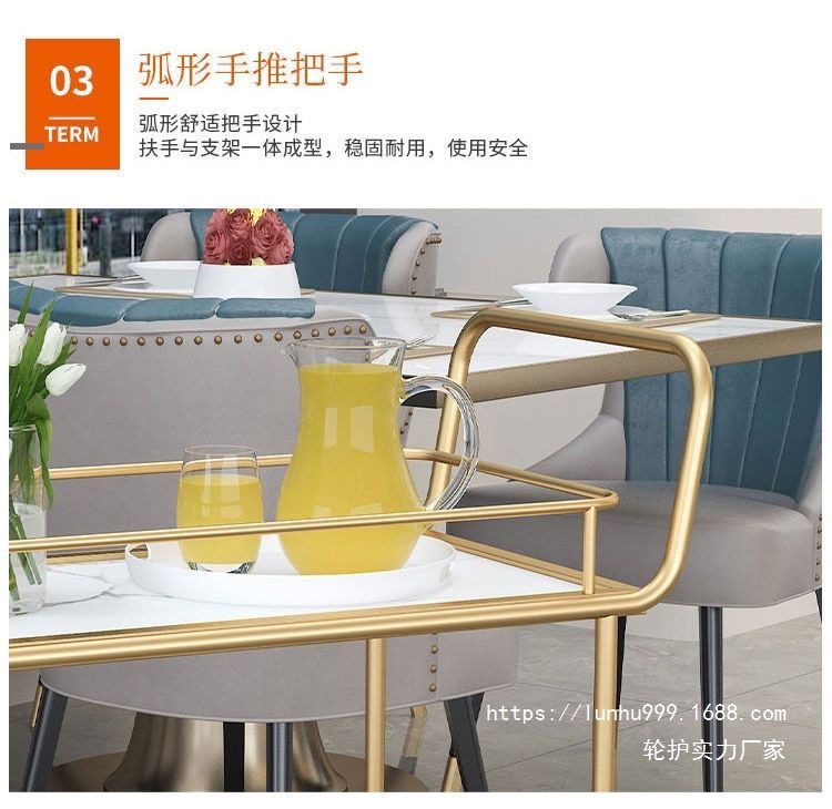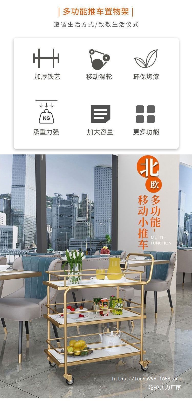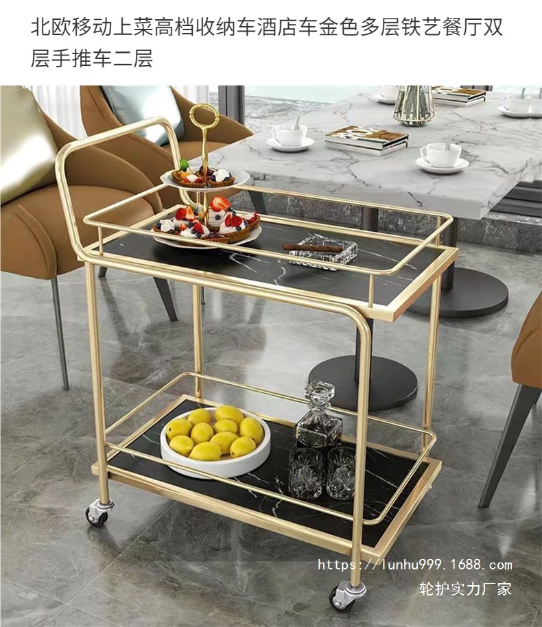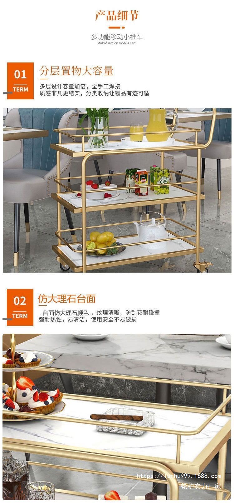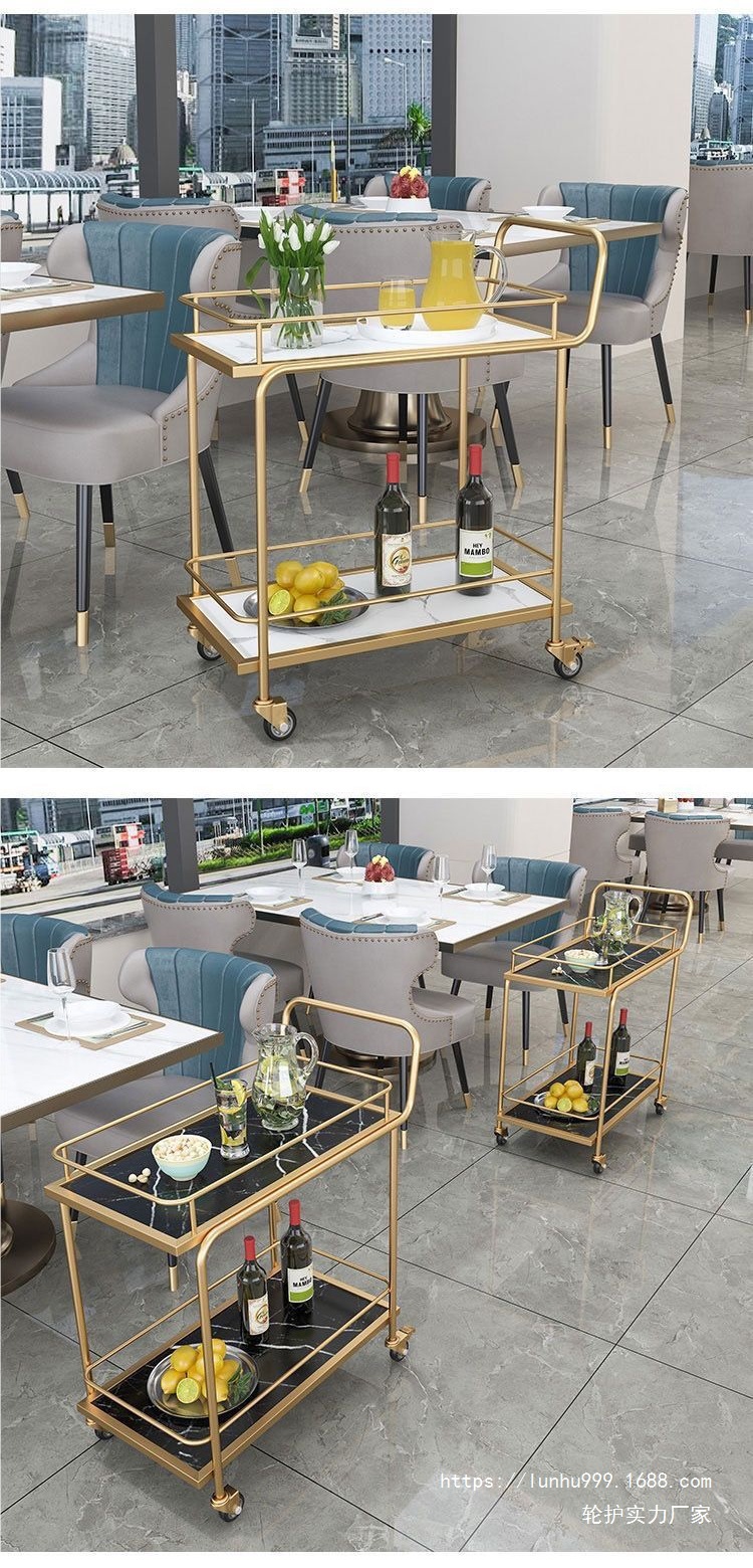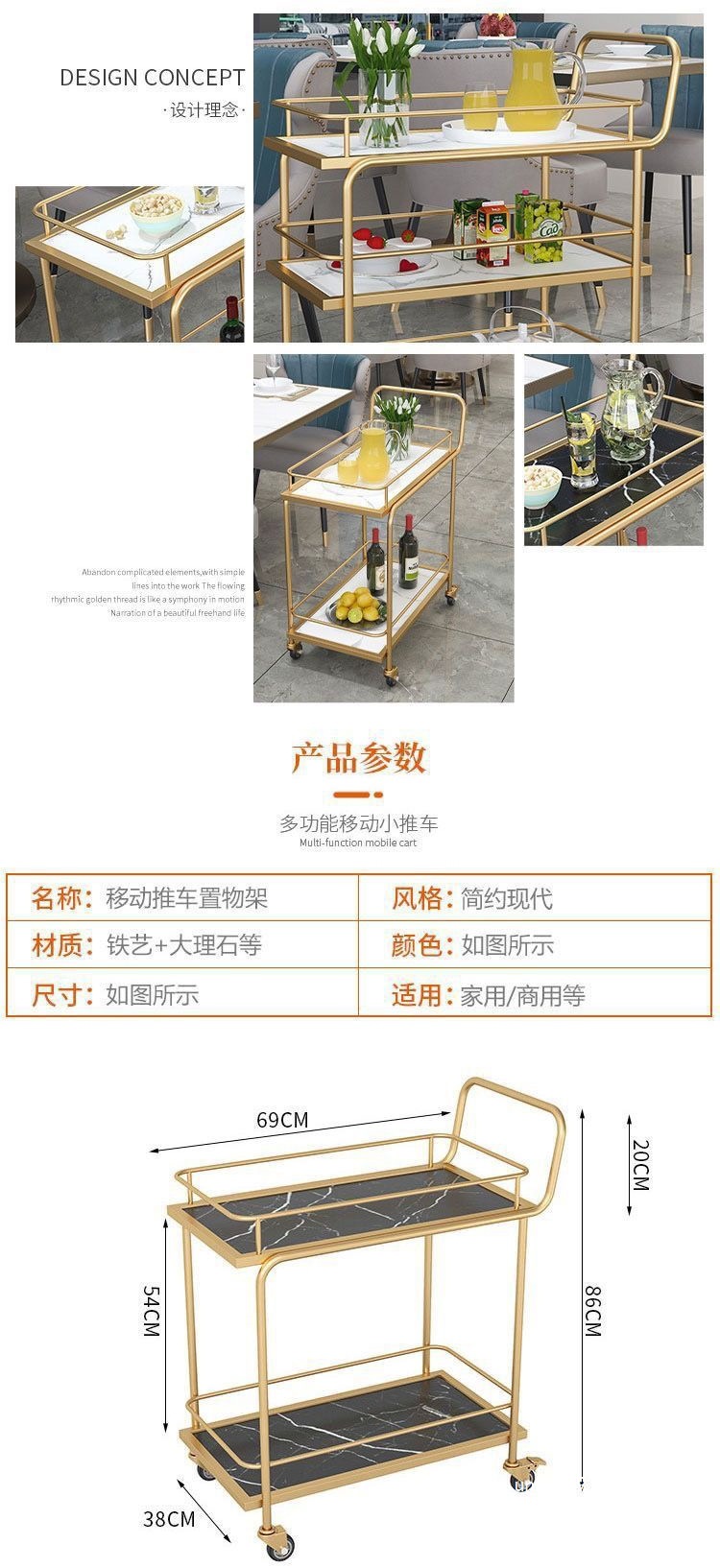 북유럽 모바일 서빙 보관 카트 호텔 카트 골드 다층 철 레스토랑 더블 레이어 트롤리 2층스토어 가기