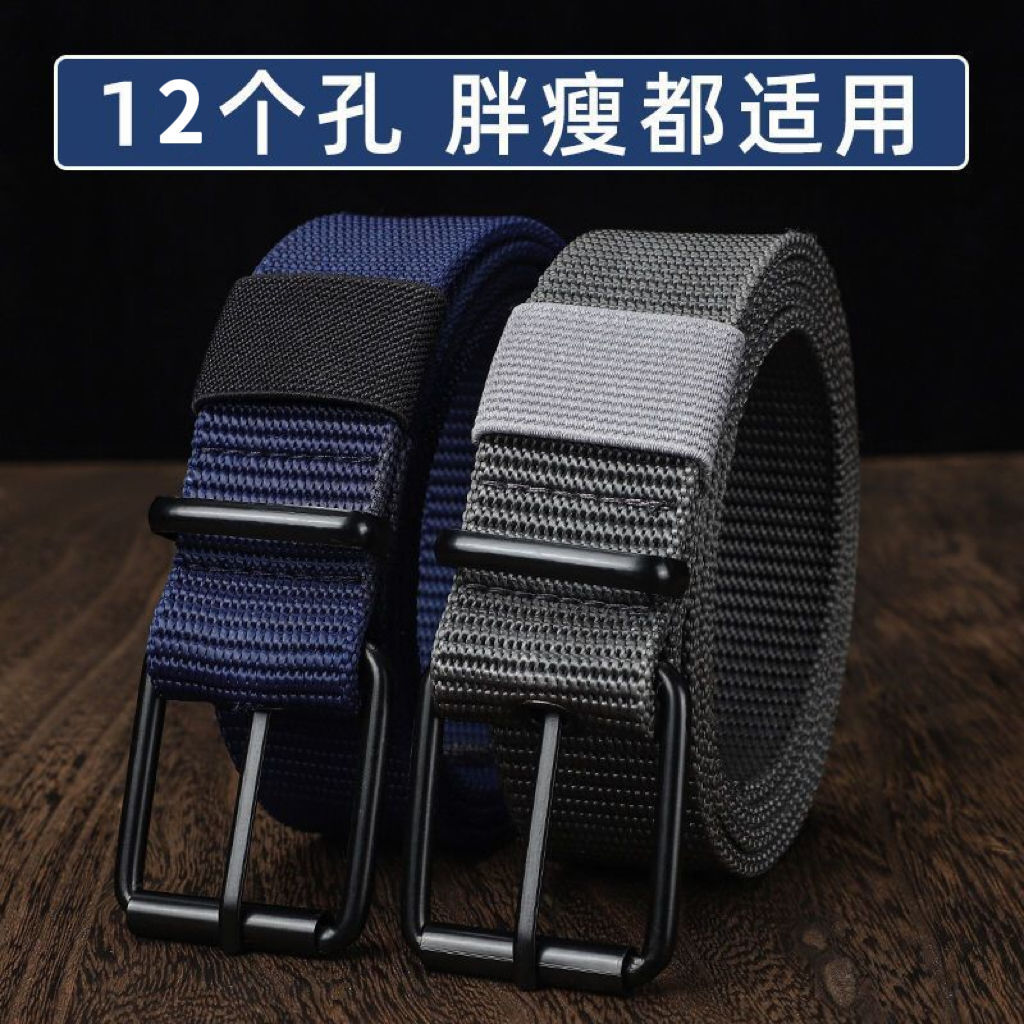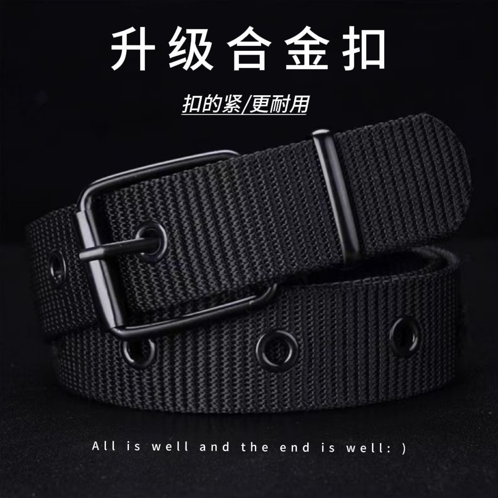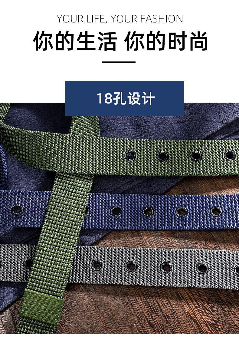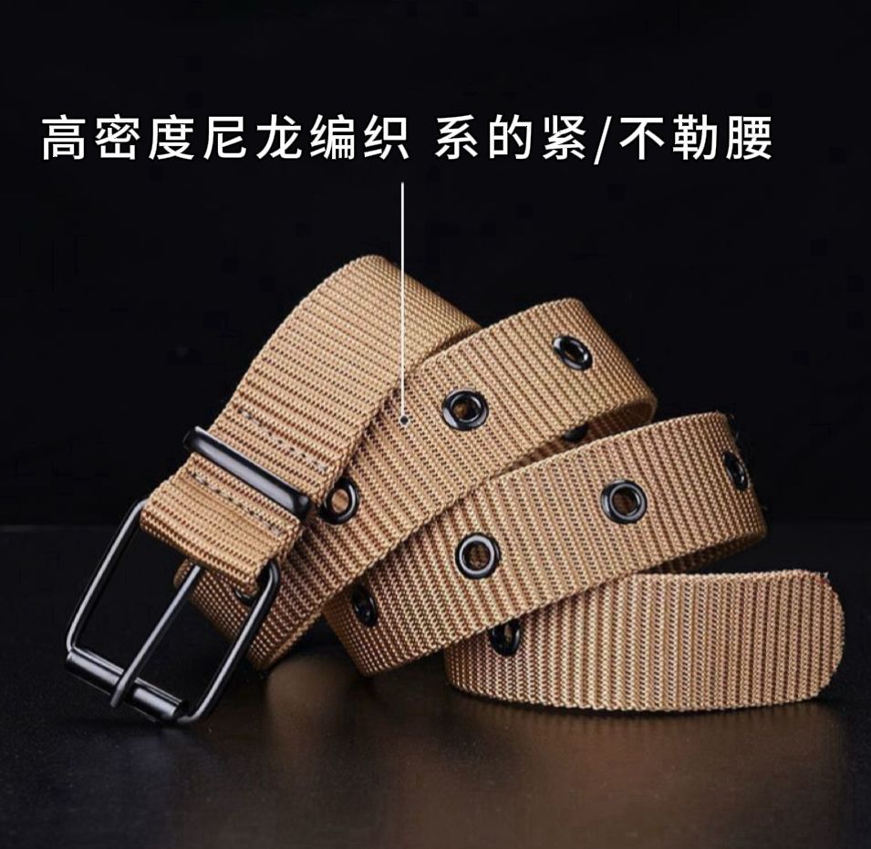 남성용 긴 군사 훈련 캔버스 벨트, 학생용 청바지 벨트, 남성용 작업용 도매 다공성 핀 버클 벨트스토어 가기