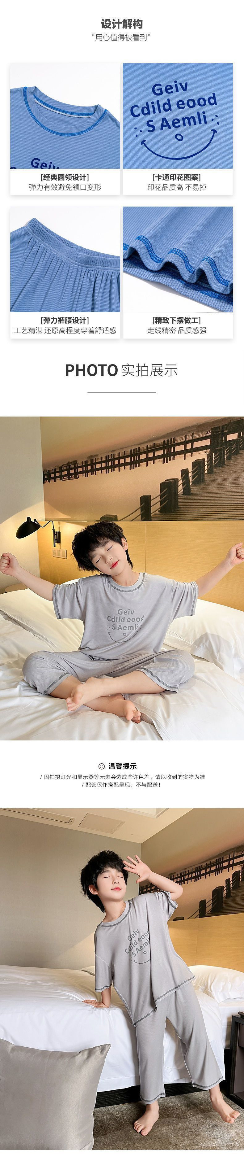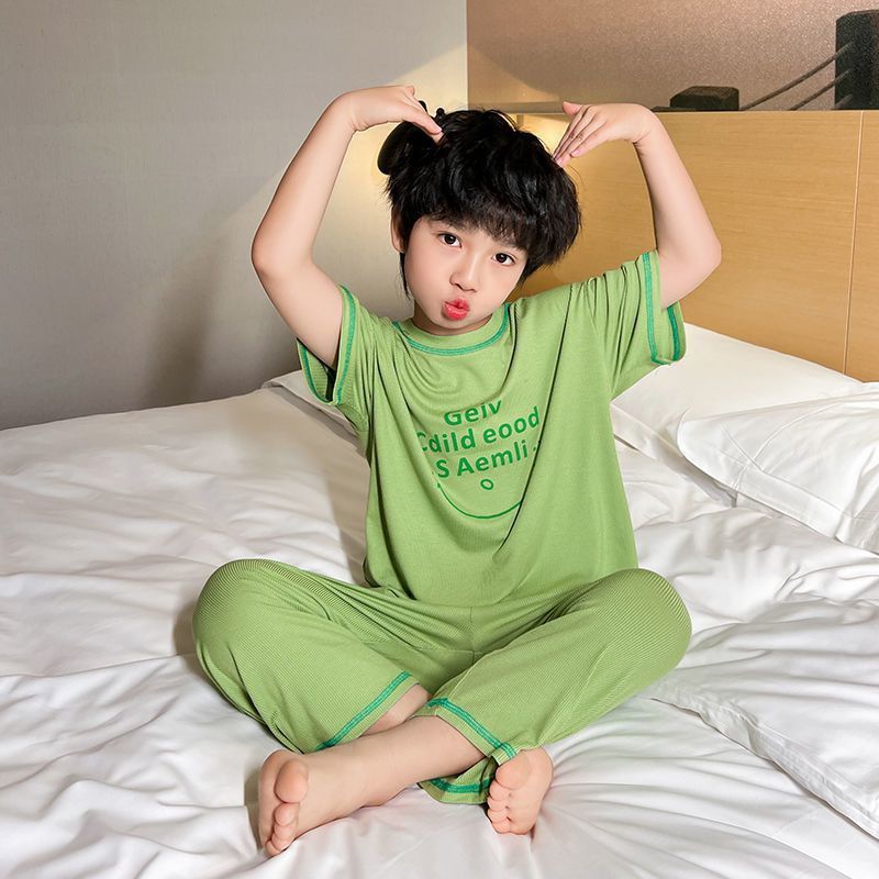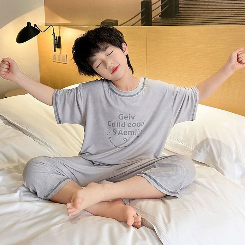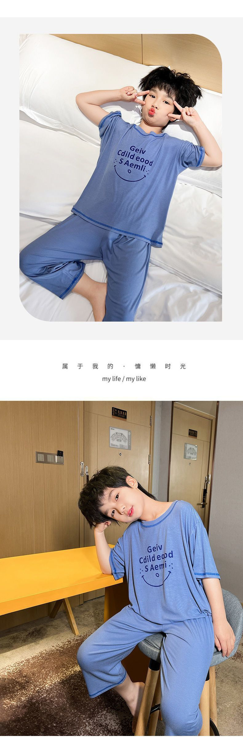 큰 어린이와 학생을 위한 여름 인터넷 연예인 소년 잠옷 모달 아이스 실크 에어컨 룸 얇은 가정복 세트