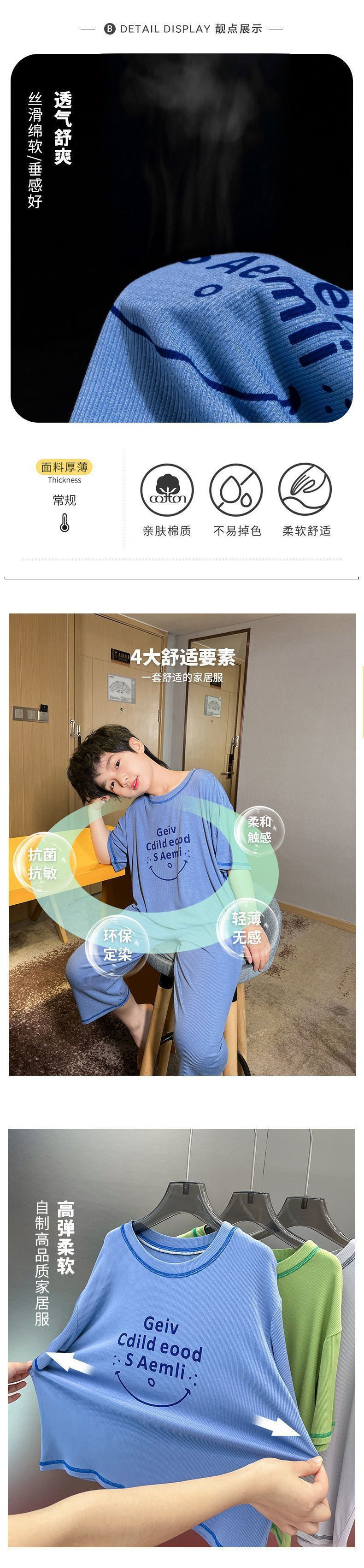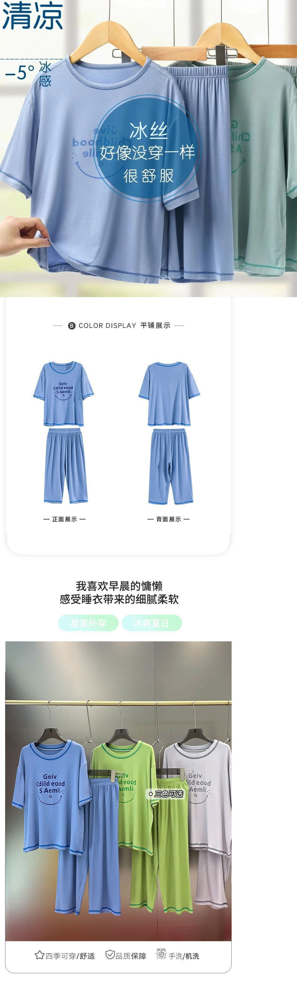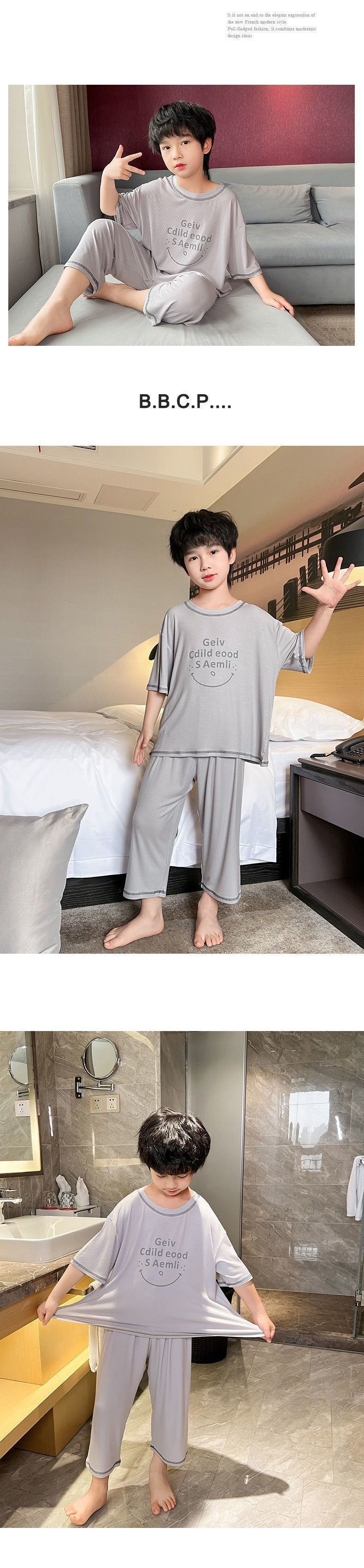 큰 어린이와 학생을 위한 여름 인터넷 연예인 소년 잠옷 모달 아이스 실크 에어컨 룸 얇은 가정복 세트