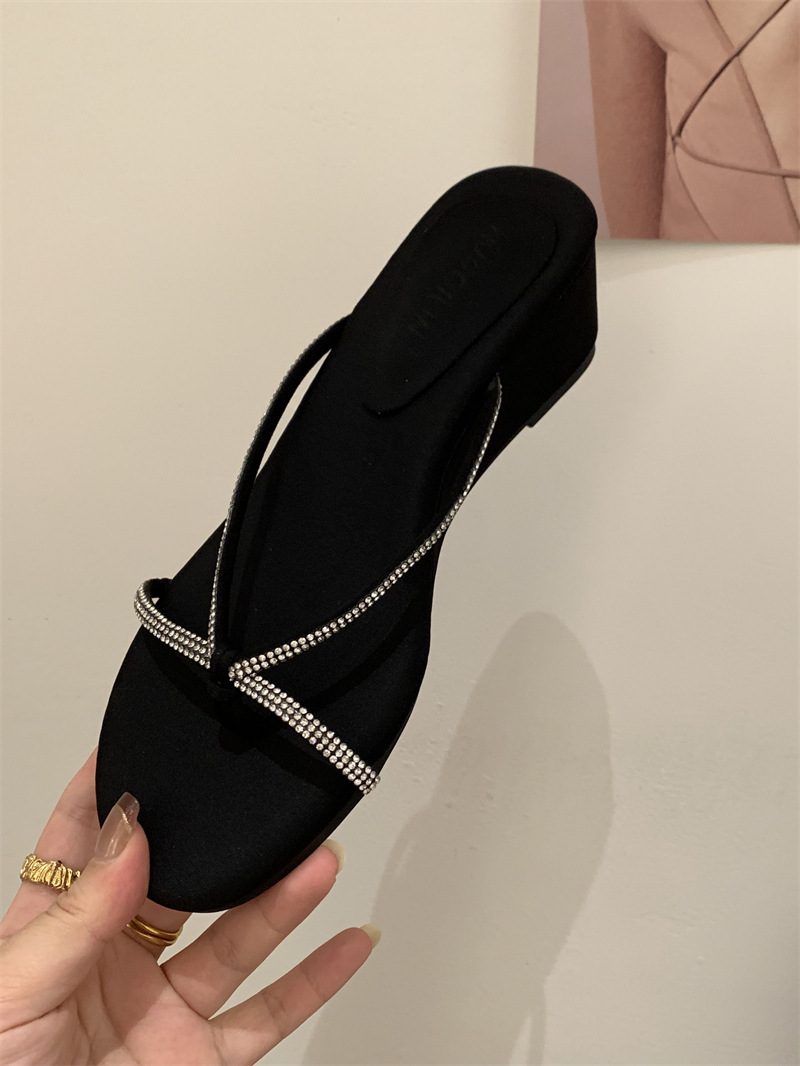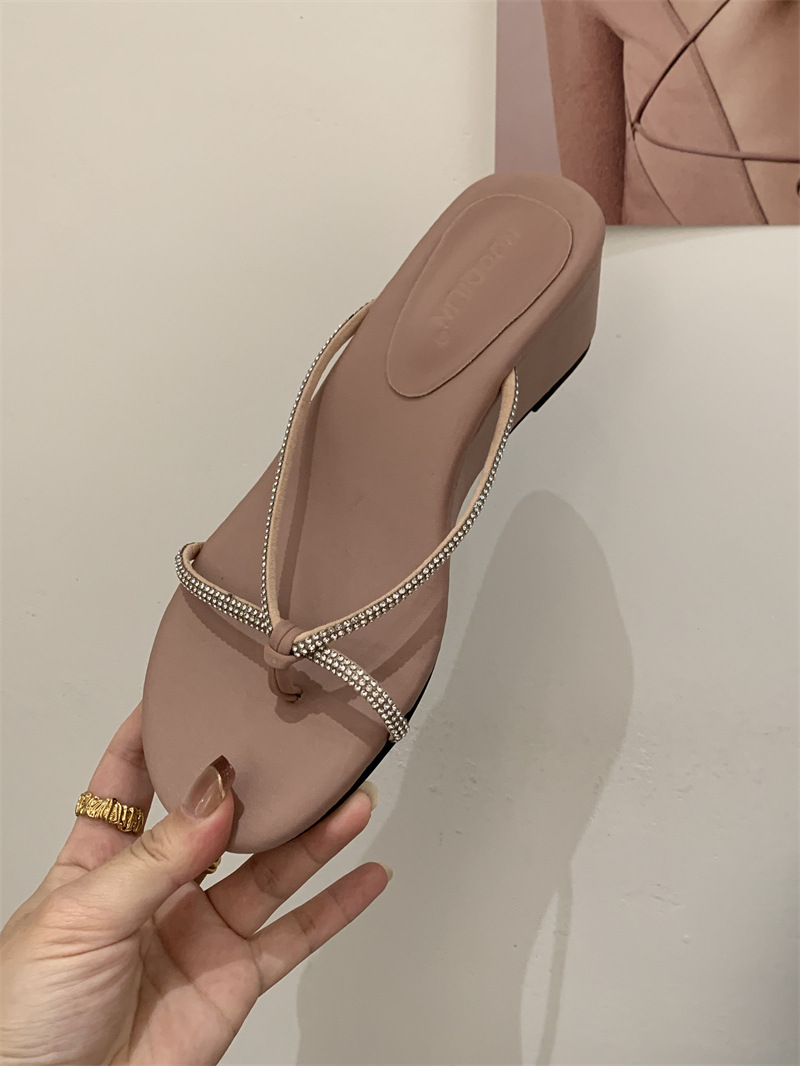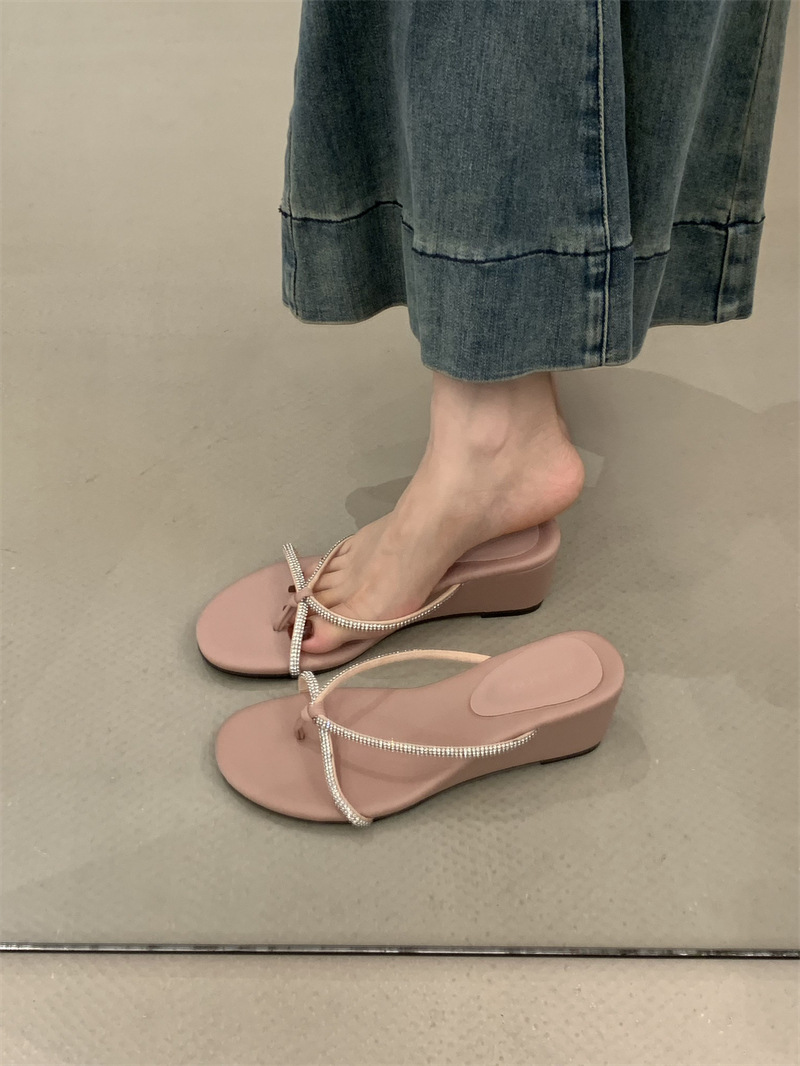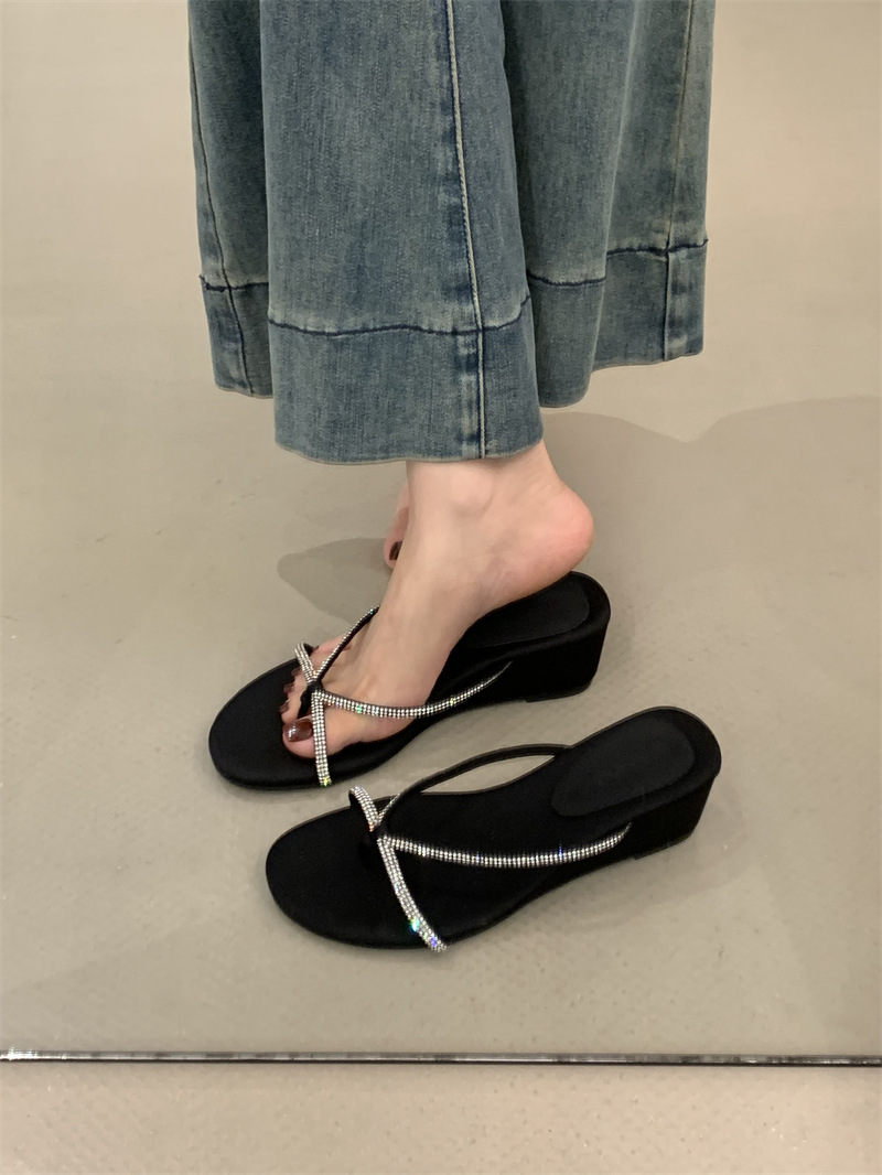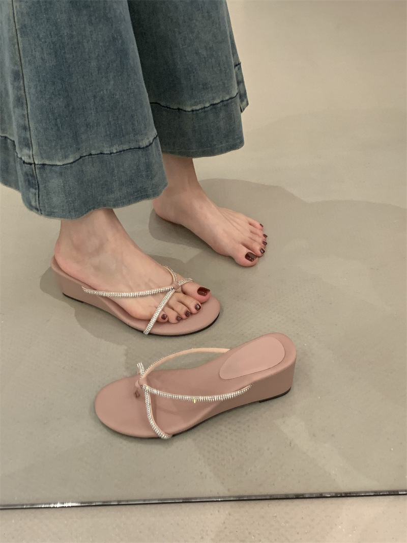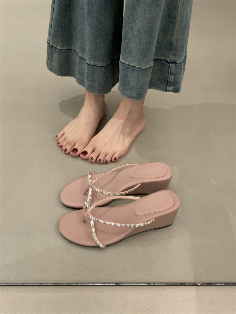 여름 아우터웨어를위한 라인스톤 두꺼운 밑창 슬리퍼 2025 새로운 패션 해변 비치 미끄럼 방지 작은 샌들