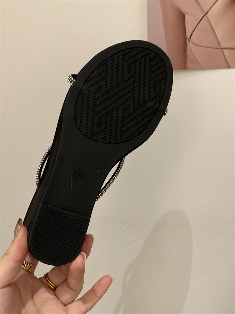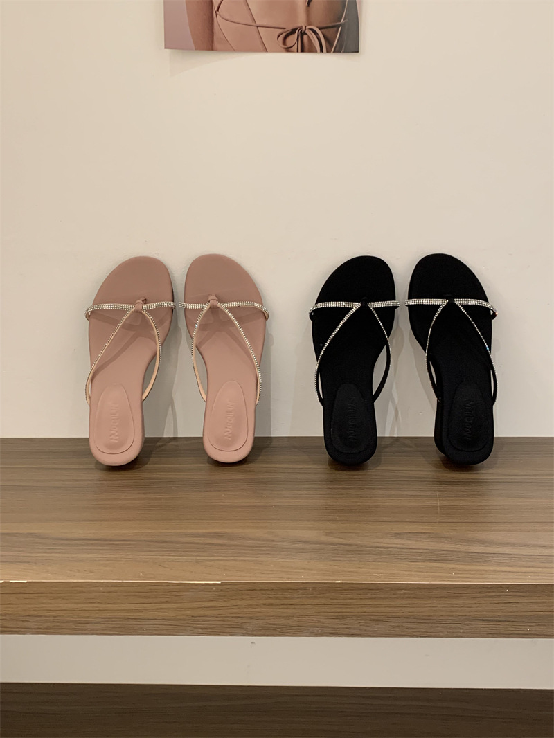 여름 아우터웨어를위한 라인스톤 두꺼운 밑창 슬리퍼 2025 새로운 패션 해변 비치 미끄럼 방지 작은 샌들스토어 가기
