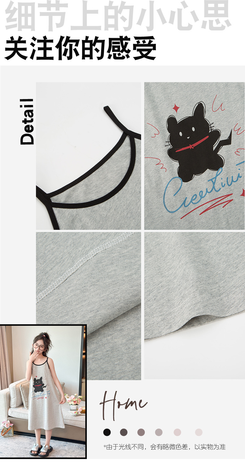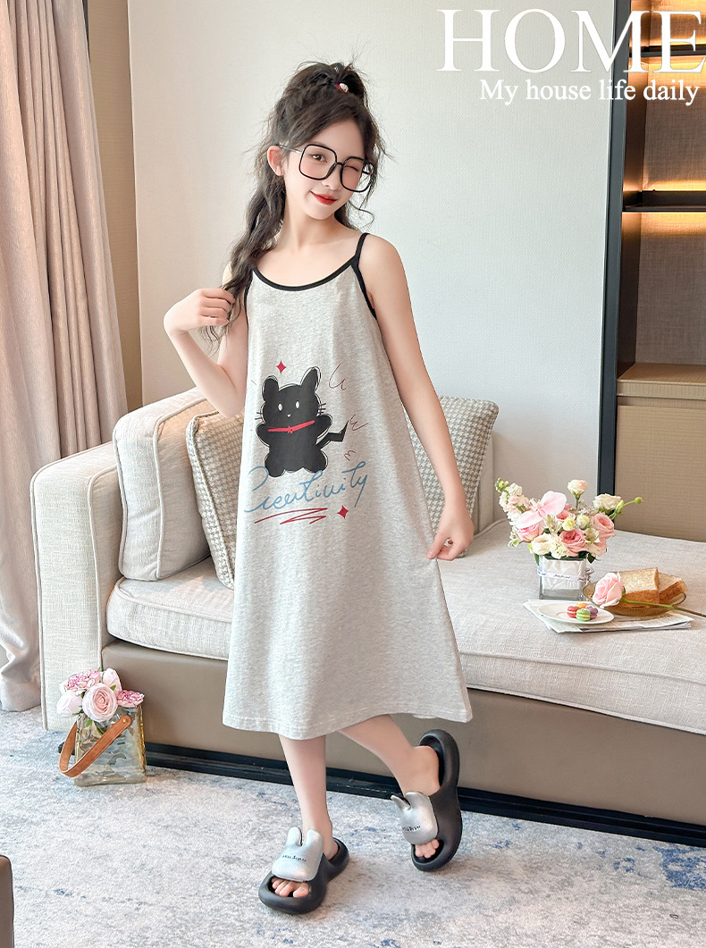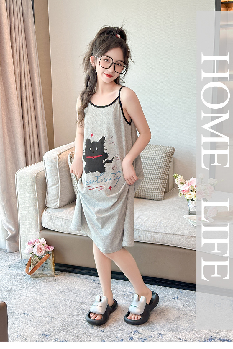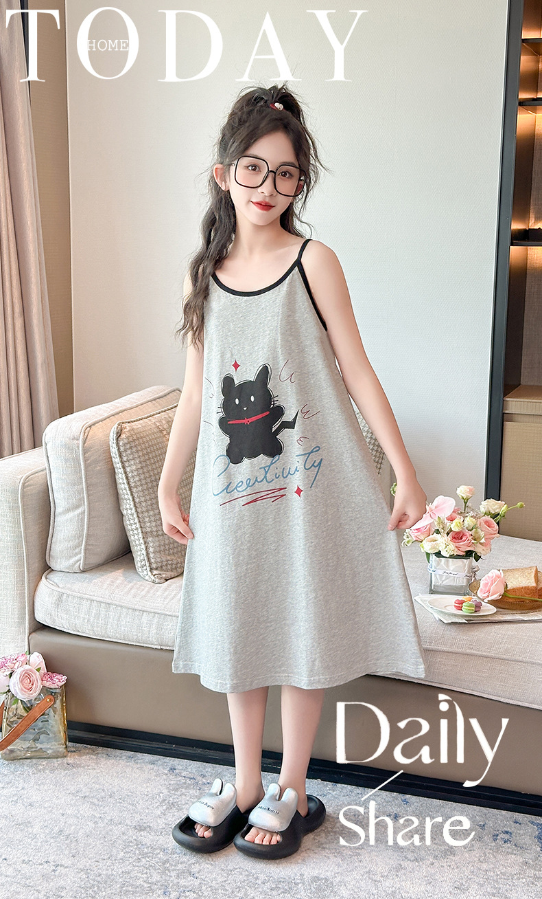 여자 잠옷 2025 새로운 어린이 서스펜더 잠옷 순수 코튼 여름 어린이 가정 의류 큰 어린이 공주 스타일 스커트