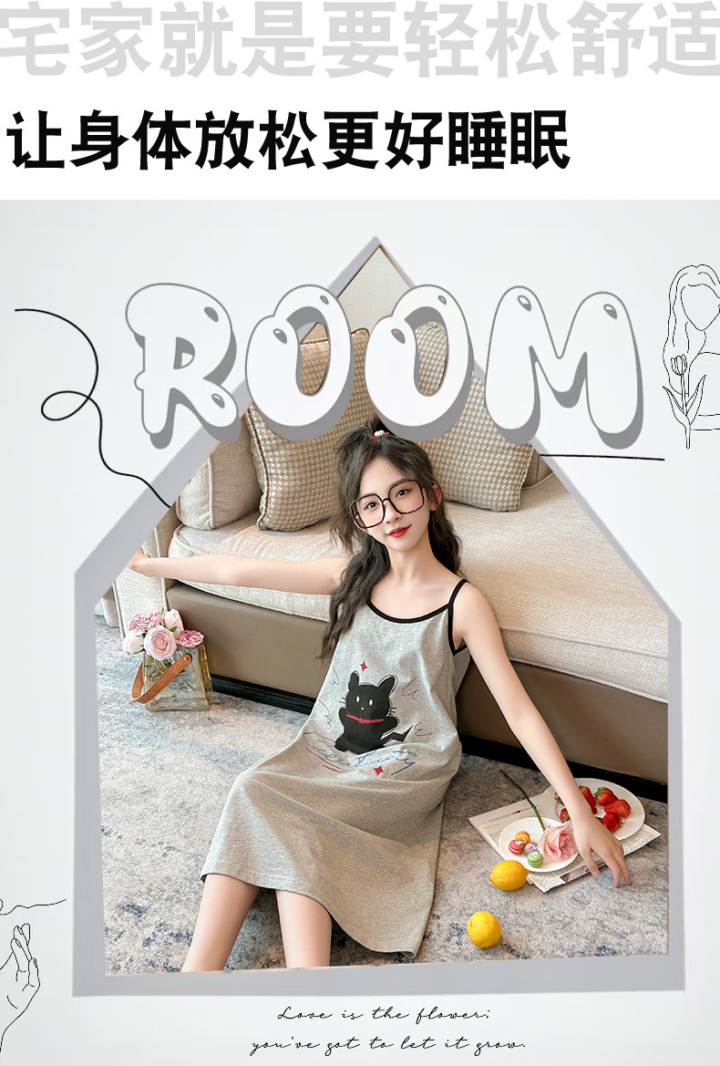 여자 잠옷 2025 새로운 어린이 서스펜더 잠옷 순수 코튼 여름 어린이 가정 의류 큰 어린이 공주 스타일 스커트스토어 가기