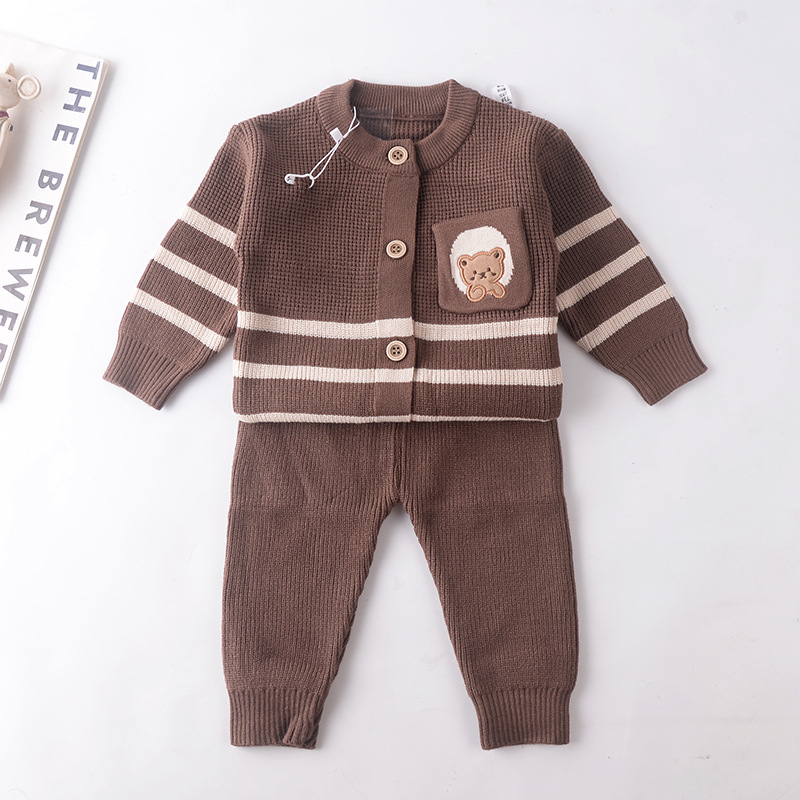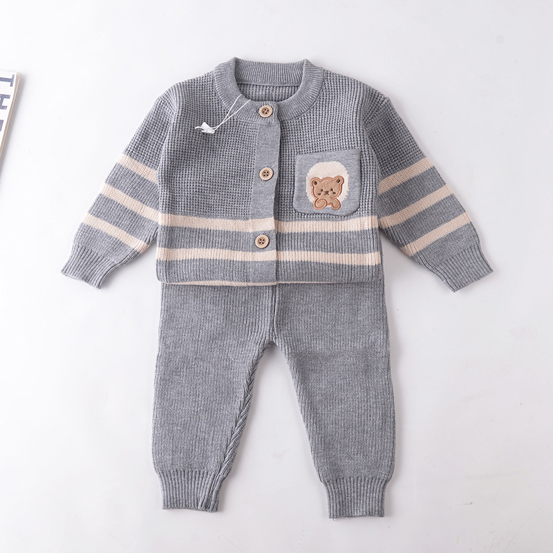 소년 정장 2025 가을 새로운 스타일 유아 및 유아 스웨터 투피스 탑 + 바지 아동 스웨터스토어 가기