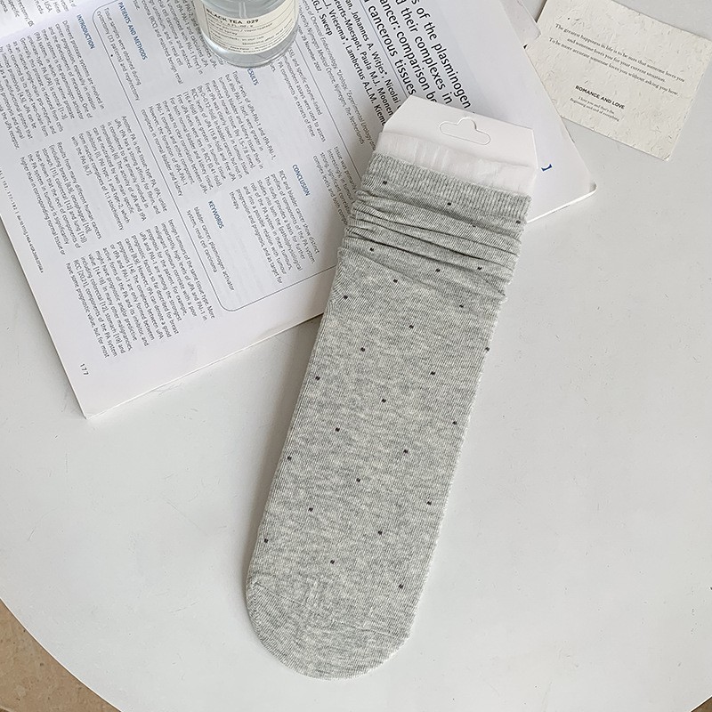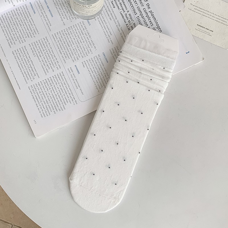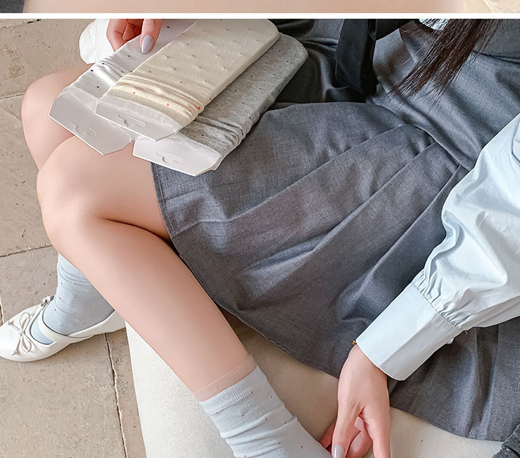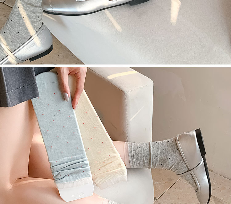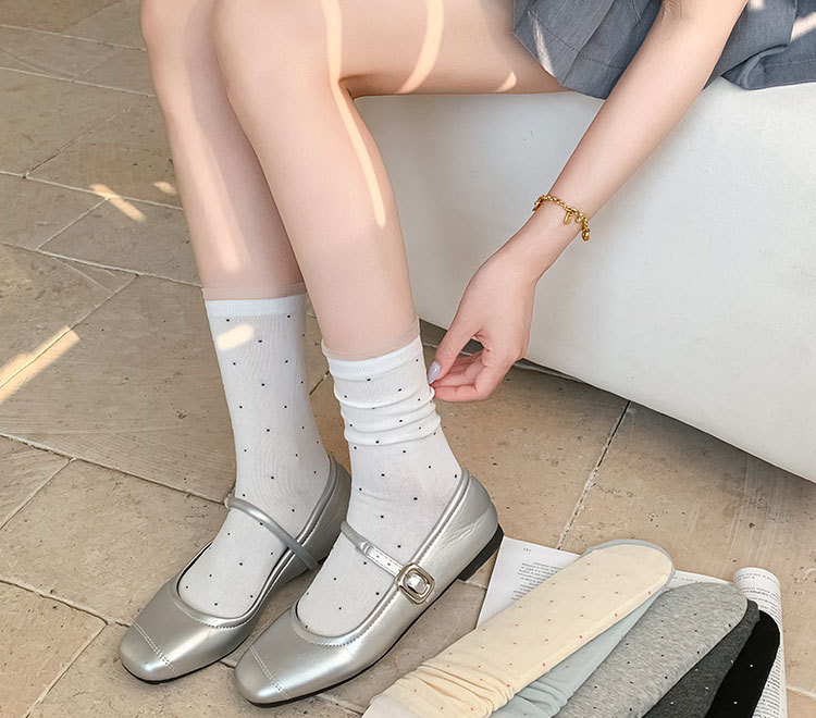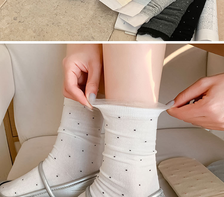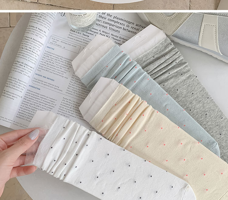 여성용 폴카 도트 양말 여름 얇은 양말 일본식 뼈없는 순수 코튼 레이스 발레 스타일 소녀 중간 튜브 양말스토어 가기