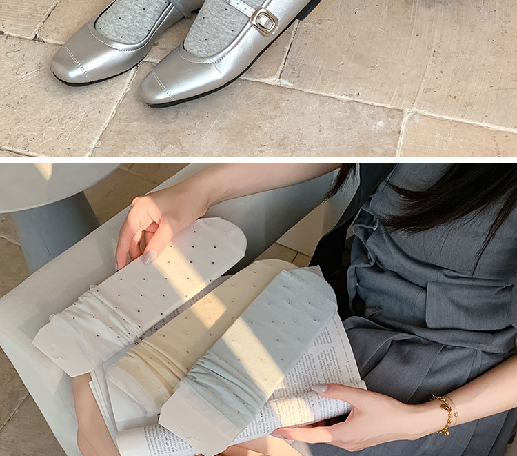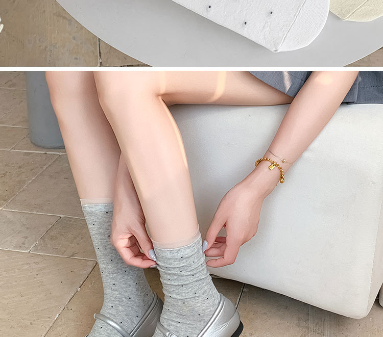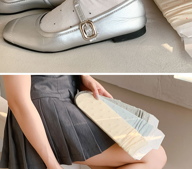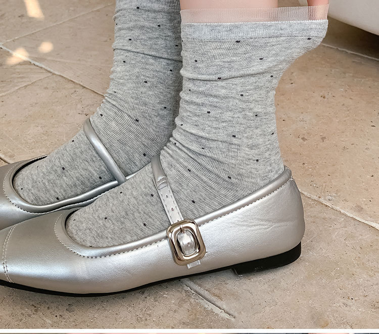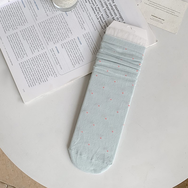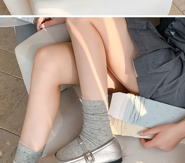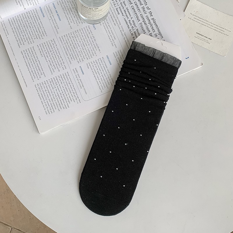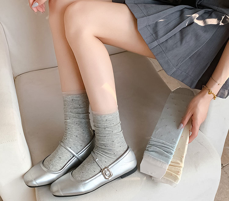 여성용 폴카 도트 양말 여름 얇은 양말 일본식 뼈없는 순수 코튼 레이스 발레 스타일 소녀 중간 튜브 양말스토어 가기