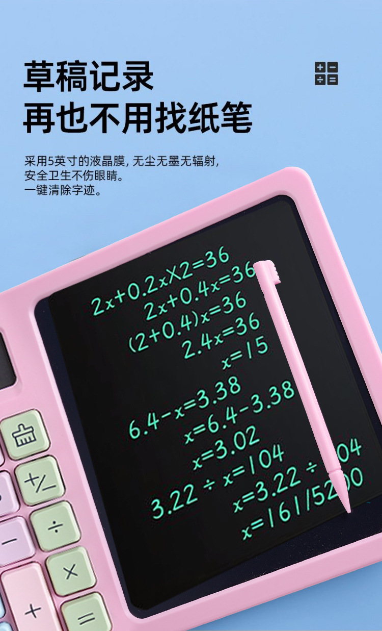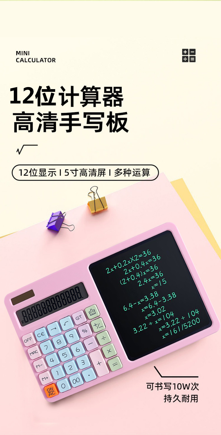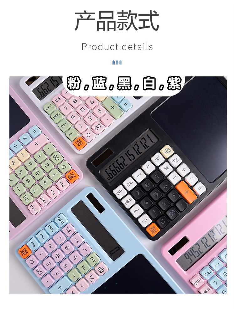 12 자리 진정한 태양 에너지 필기 보드 계산기 LCD 쓰기 보드 컴퓨터 비즈니스 사무실 사용 휴대용 컴퓨터스토어 가기