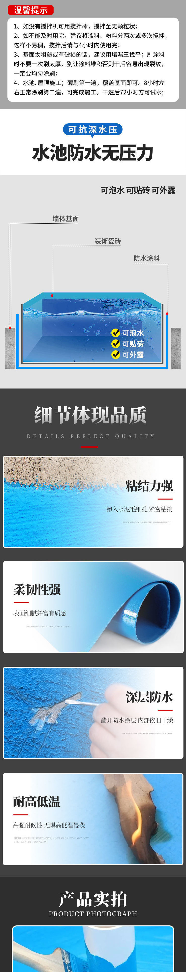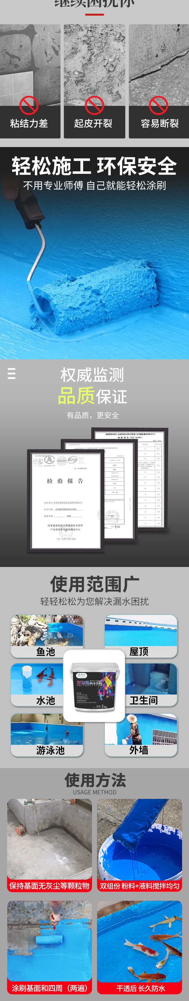 물고기 연못 방수 코팅, 수영장 특수 누수 방지 접착제 방수 페인트, 욕실 지붕 외벽 지붕 누수 방지 및 누수 방지 킹