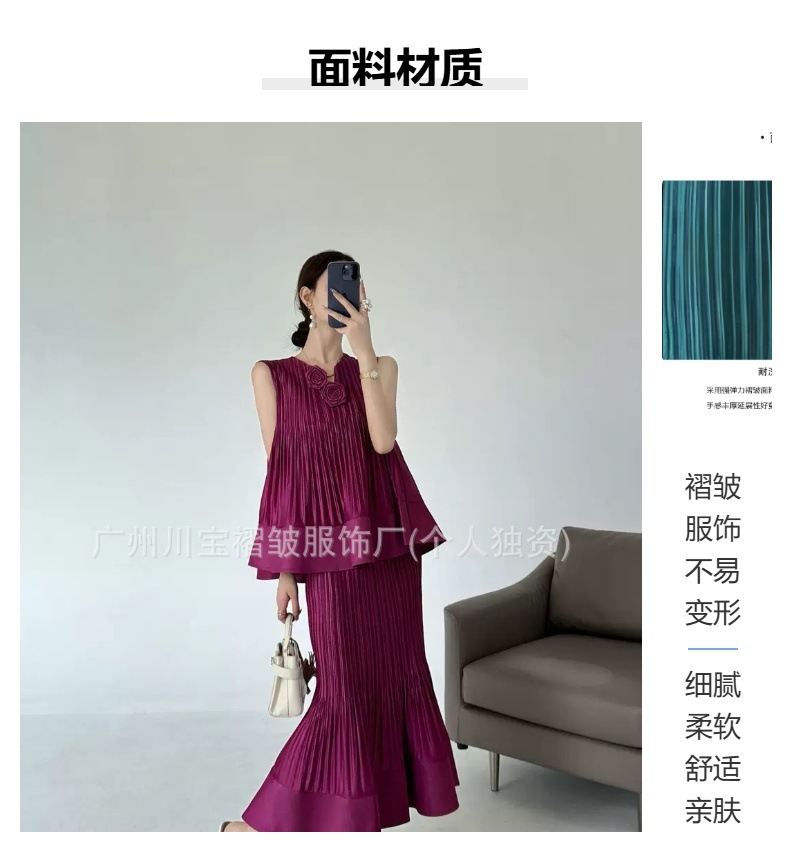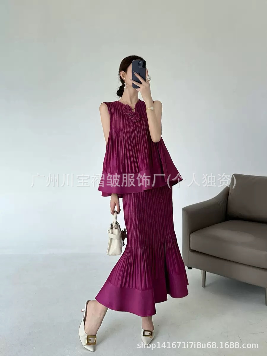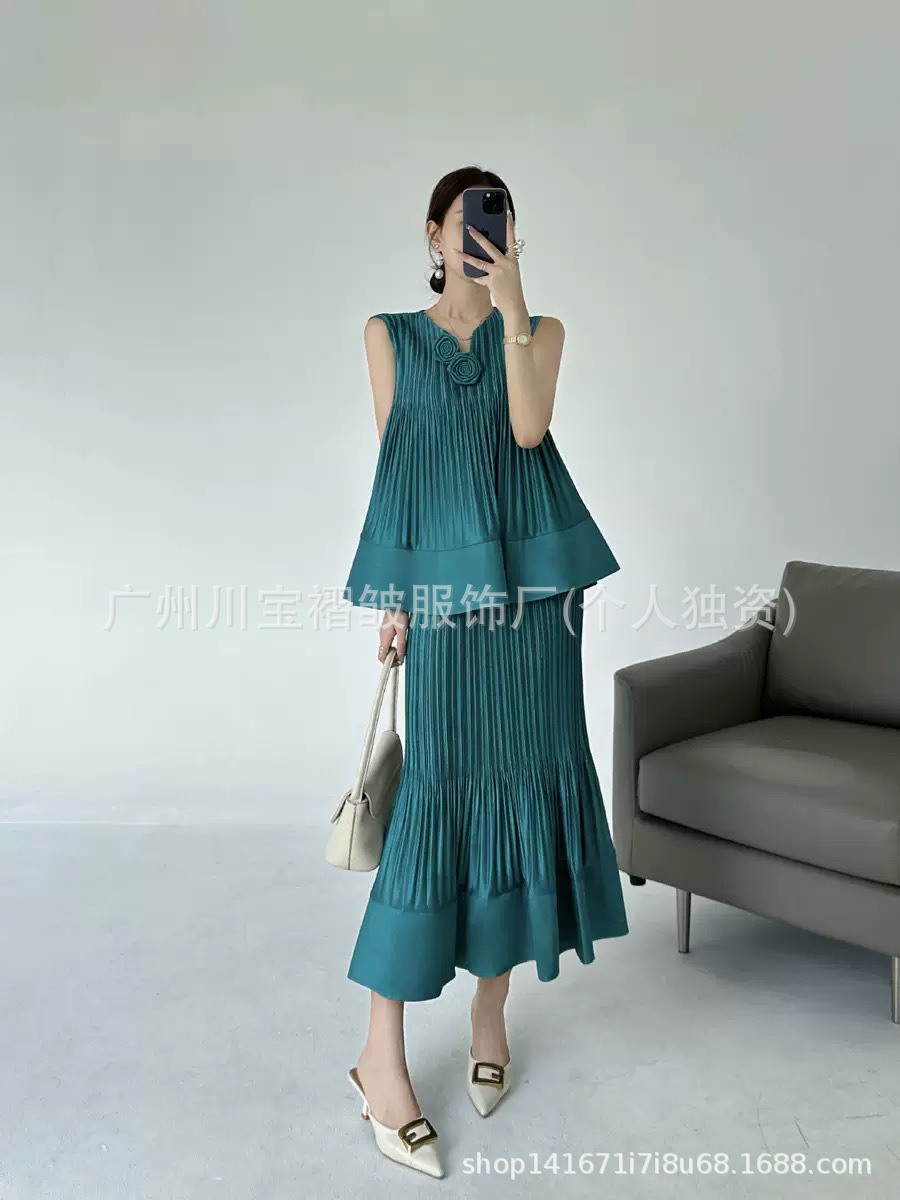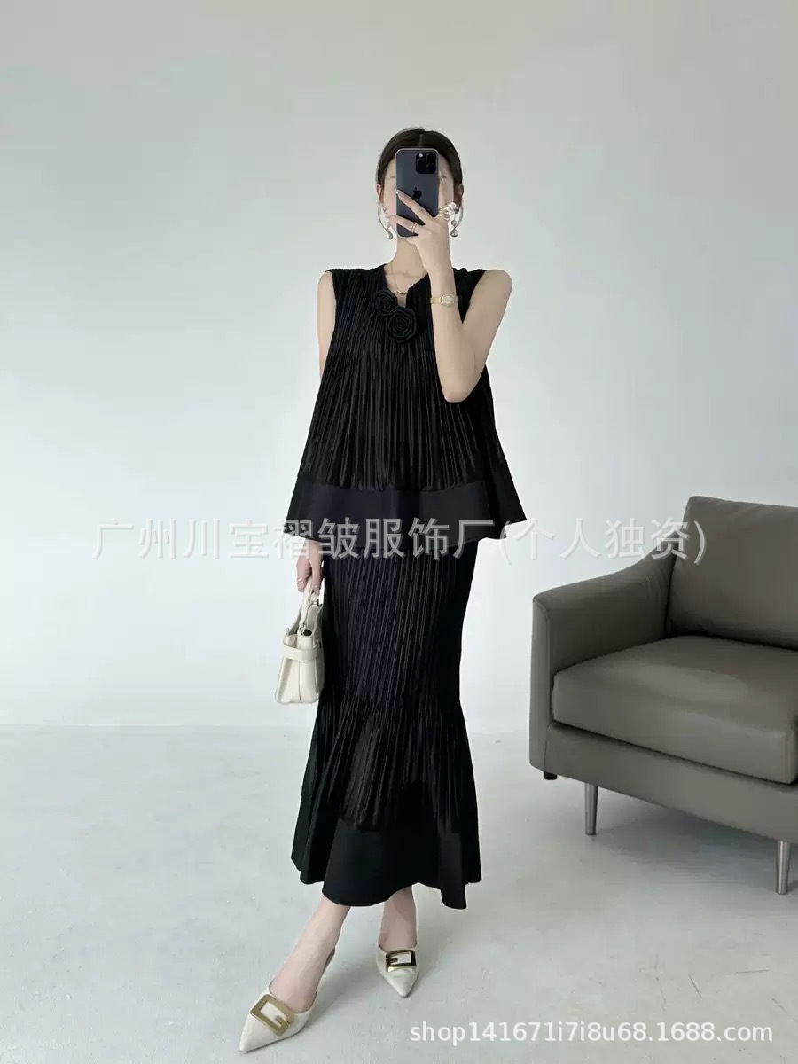 국경 간 패션 2025 여름 민소매 v 넥 기질 정장 스커트 입체 꽃 패션 디자인 솔리드 컬러 정장 여성스토어 가기