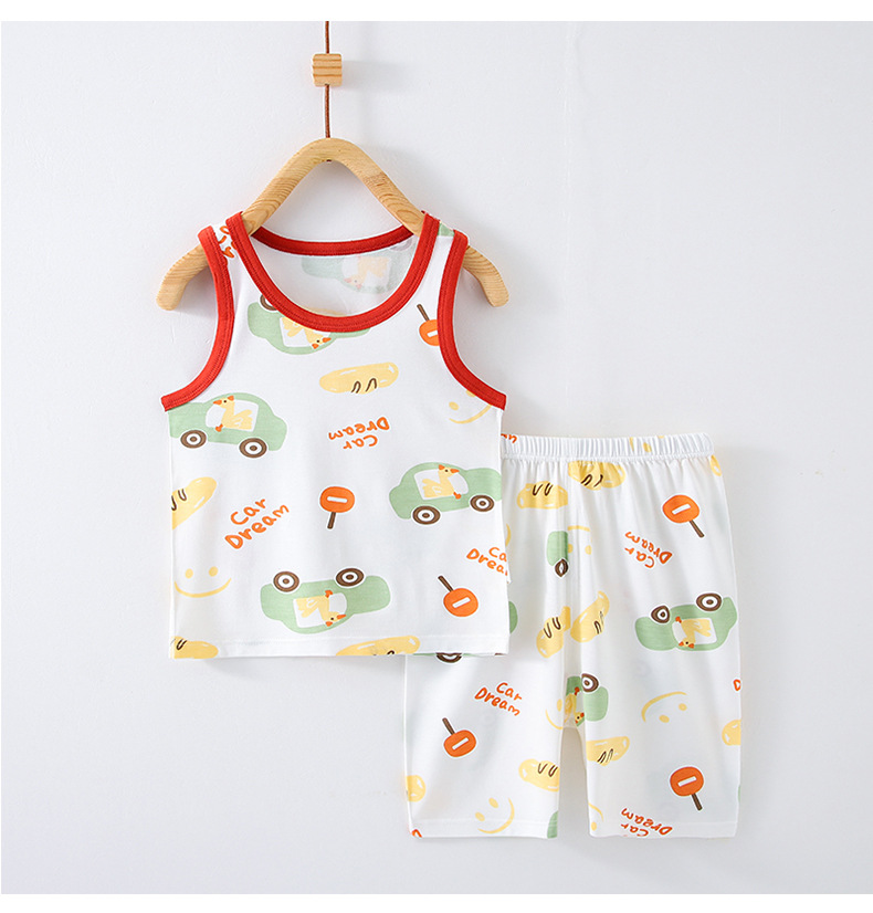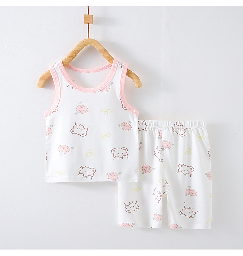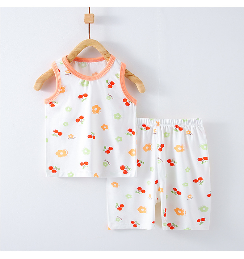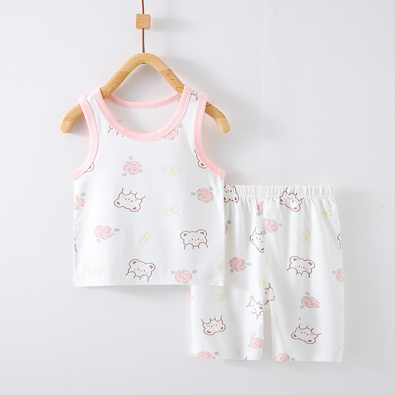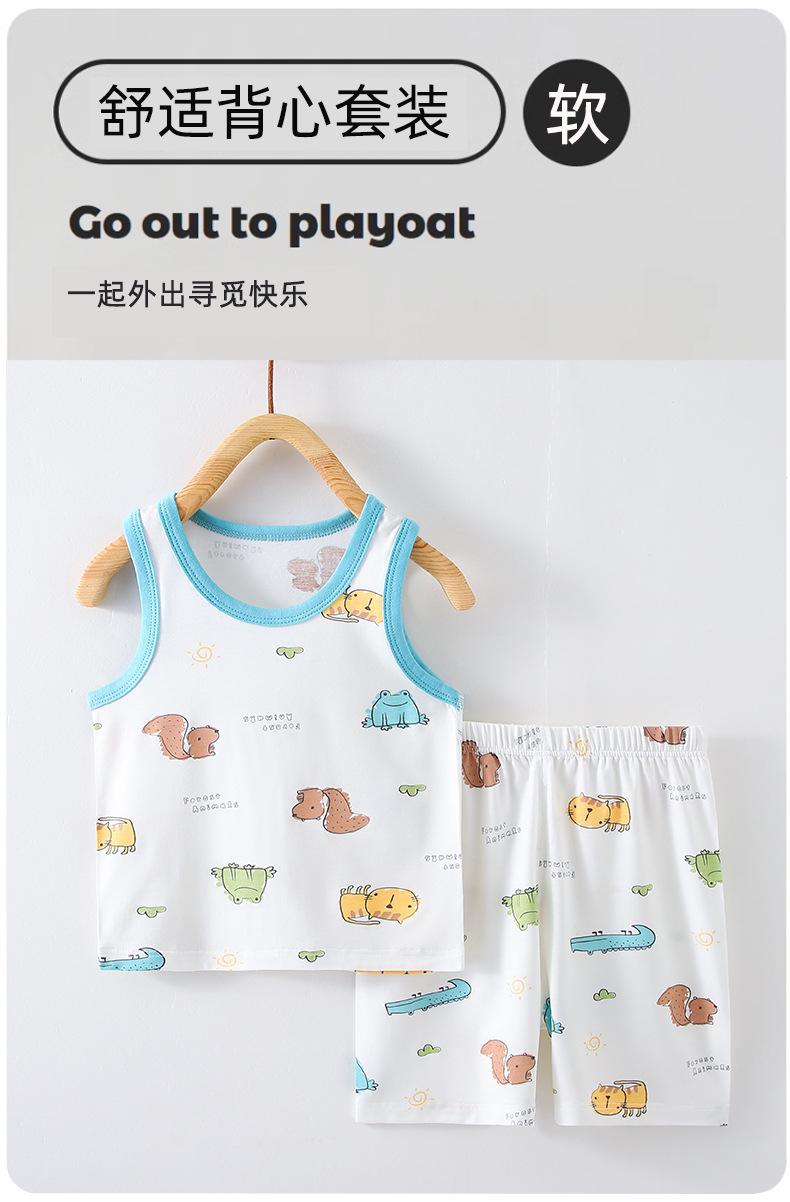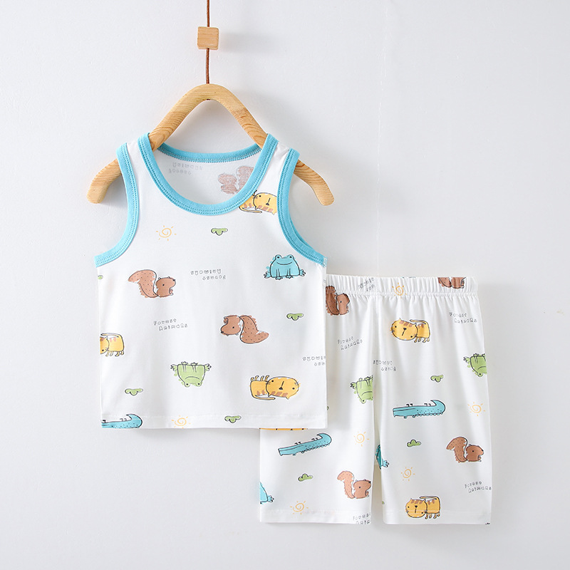 어린이 여름 얇은 소년과 소녀 아기 조끼 정장 조끼 반바지 투피스 에어컨 가정 의류