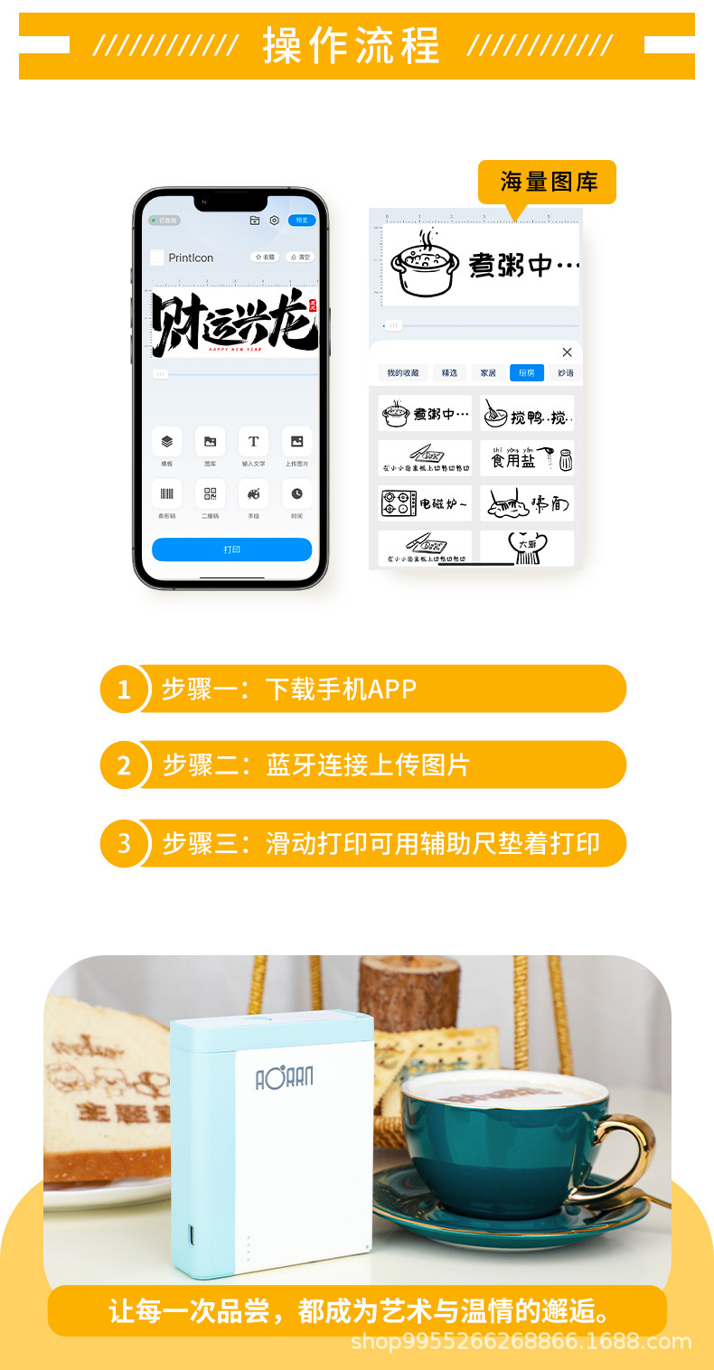 AORAN 휴대용 식품 프린터 호텔 커피 라떼 아트 요구르트 인쇄 베이킹 플레이트 인쇄 DIY스토어 가기