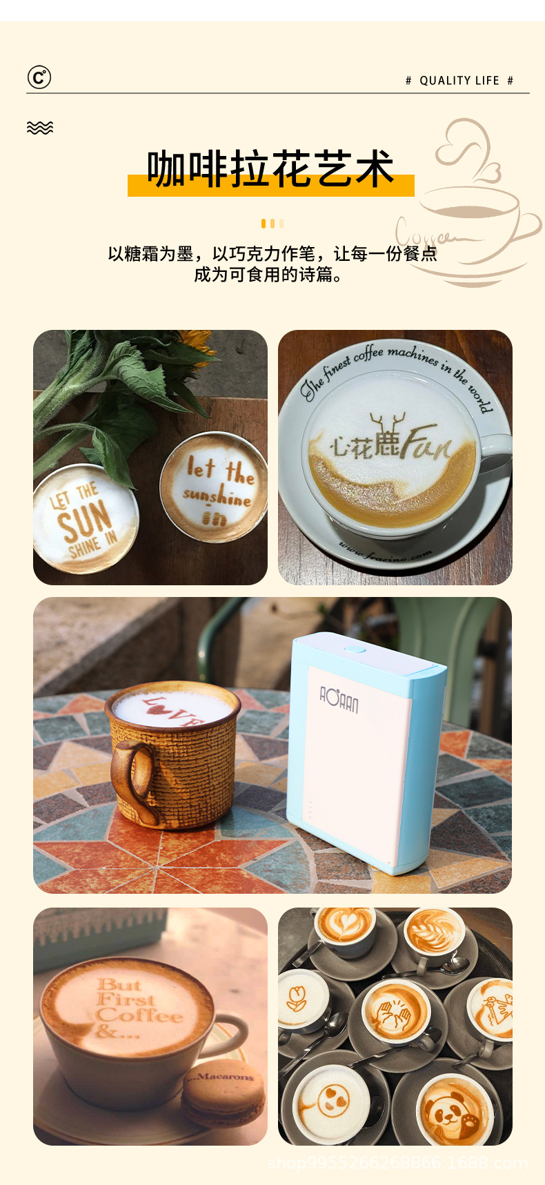 AORAN 휴대용 식품 프린터 호텔 커피 라떼 아트 요구르트 인쇄 베이킹 플레이트 인쇄 DIY