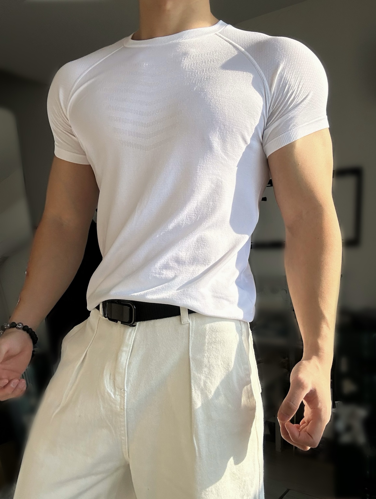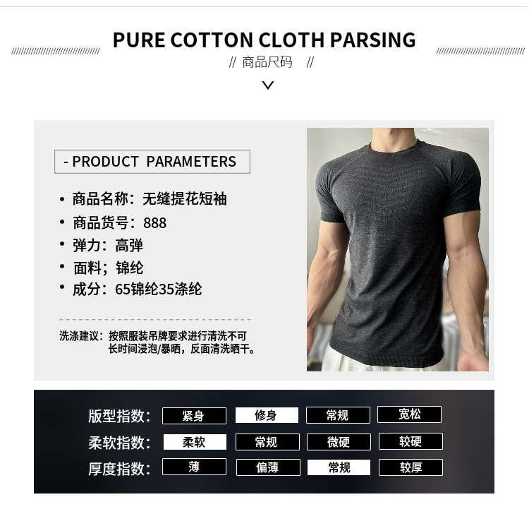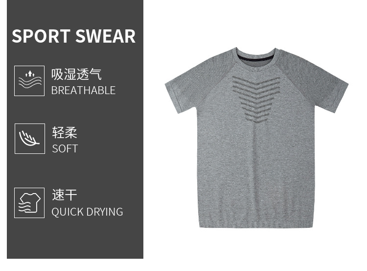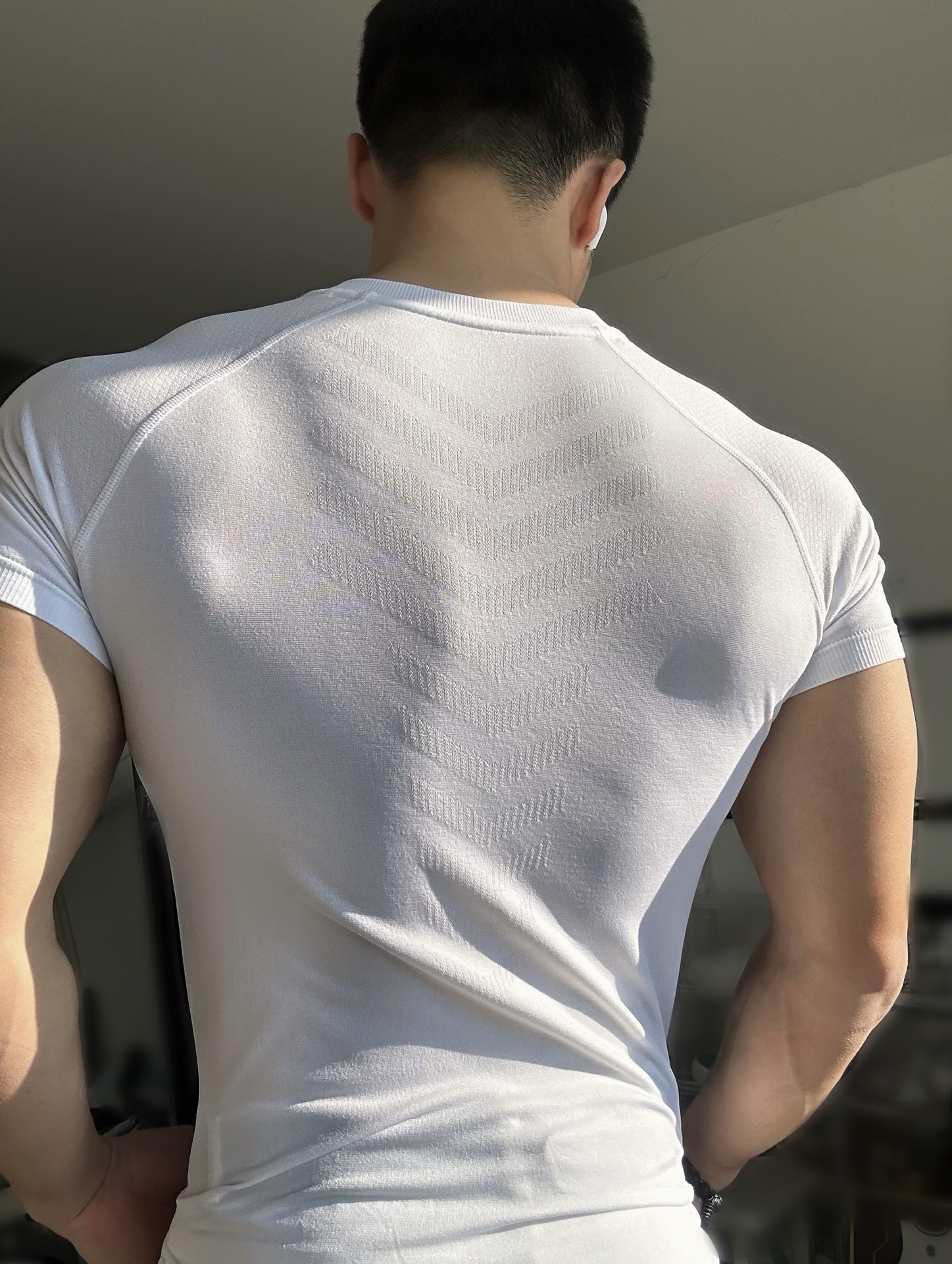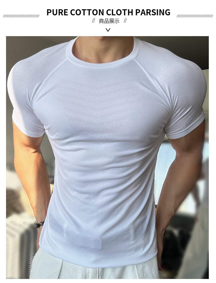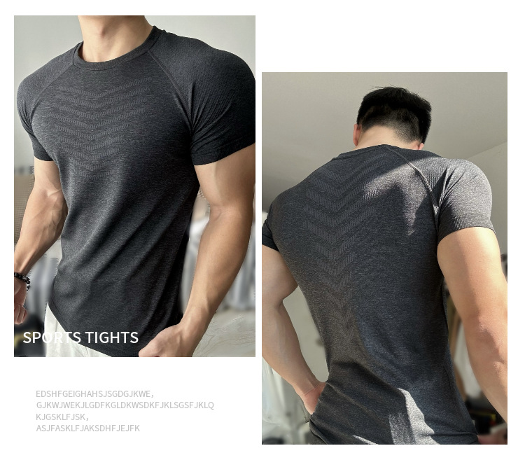 아메리칸 심리스 자카드 스포츠 커프 상어 패턴 반팔 속건 트레이닝 피트니스 스트레치 슬림 탑 남성용 티셔츠