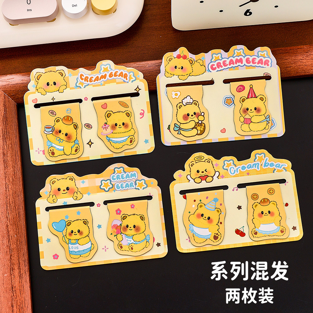 귀여운 곰 자석 책갈피 학생 학습 책 페이지 클립 양면 독서 마크 메모 클립 편지지 작은 선물