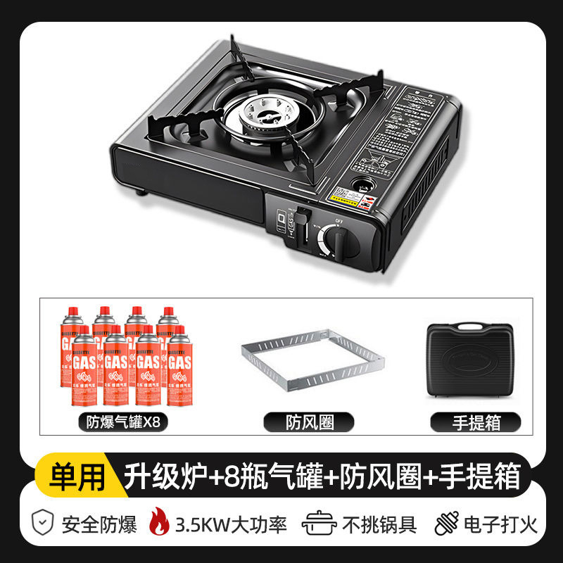 • [블랙] 업그레이드된 방폭 스토브 + 링 + 박스 + 가스 8병 [Qinyu] 업그레이드 버전