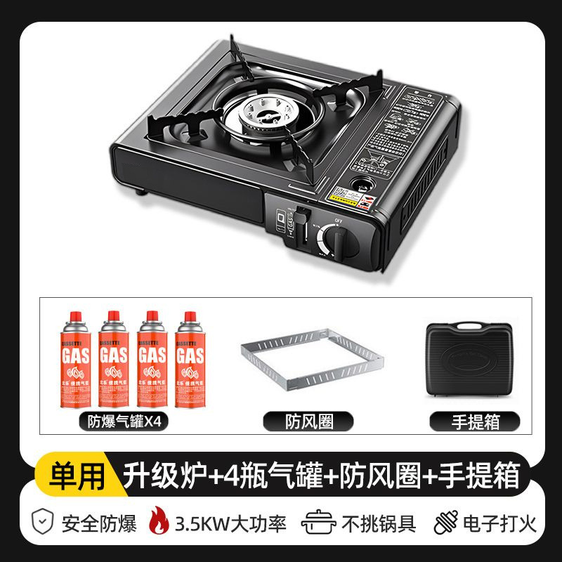 • [블랙] 업그레이드된 방폭 스토브 + 링 + 박스 + 가스 4병 [Qinyu] 업그레이드 버전