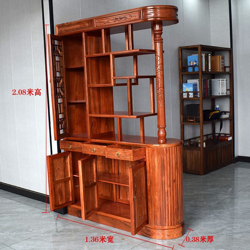 새로운 중국 스타일의 골동품 단단한 나무 집 입구 문 드래곤 컬럼 입구 캐비닛 양면 스크린 파티션 거실 블록 캐비닛