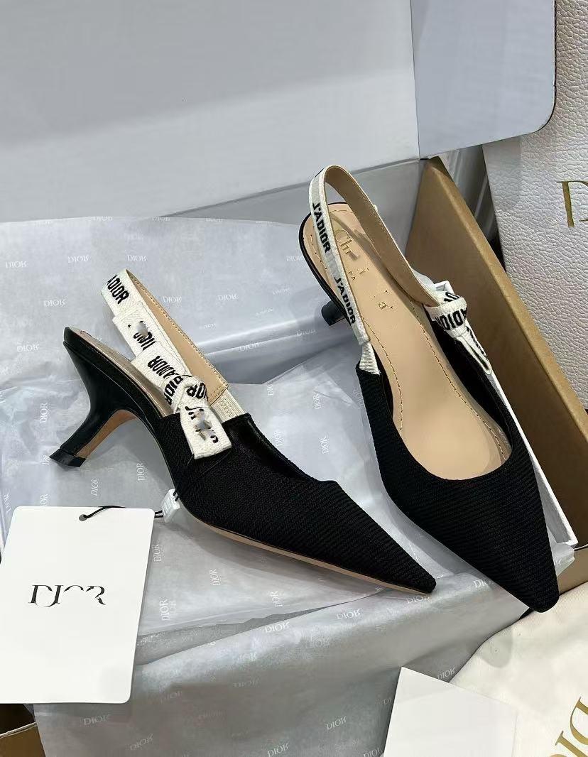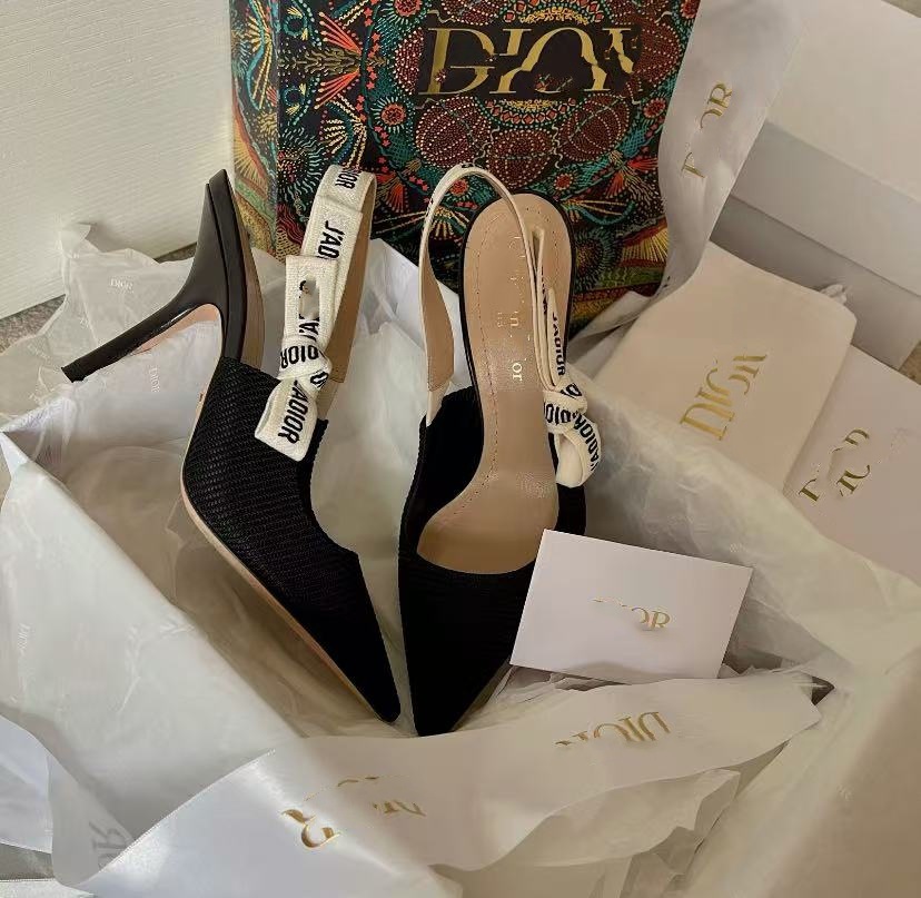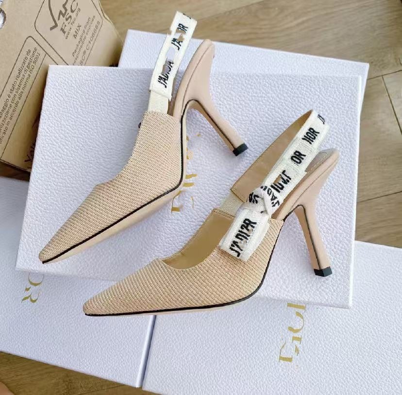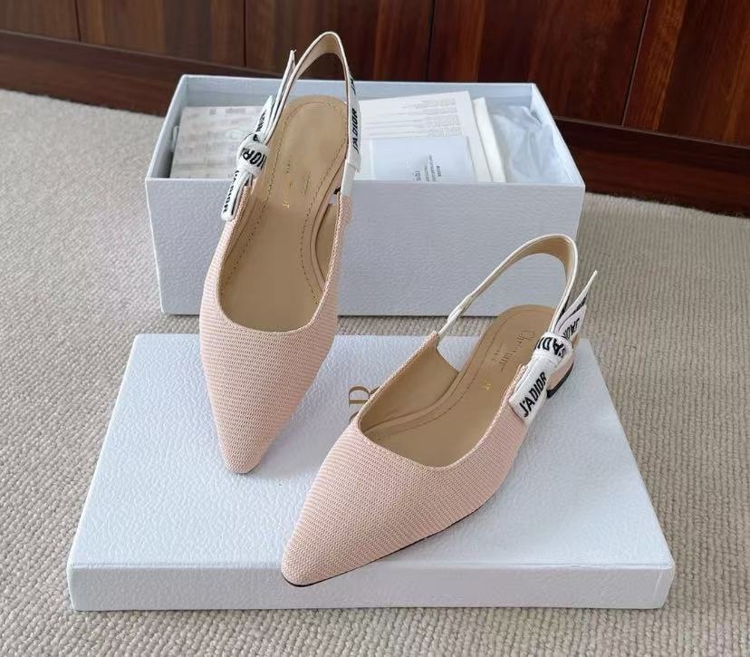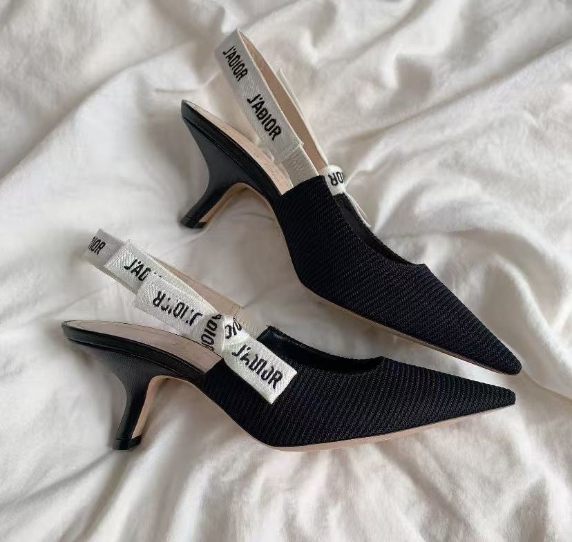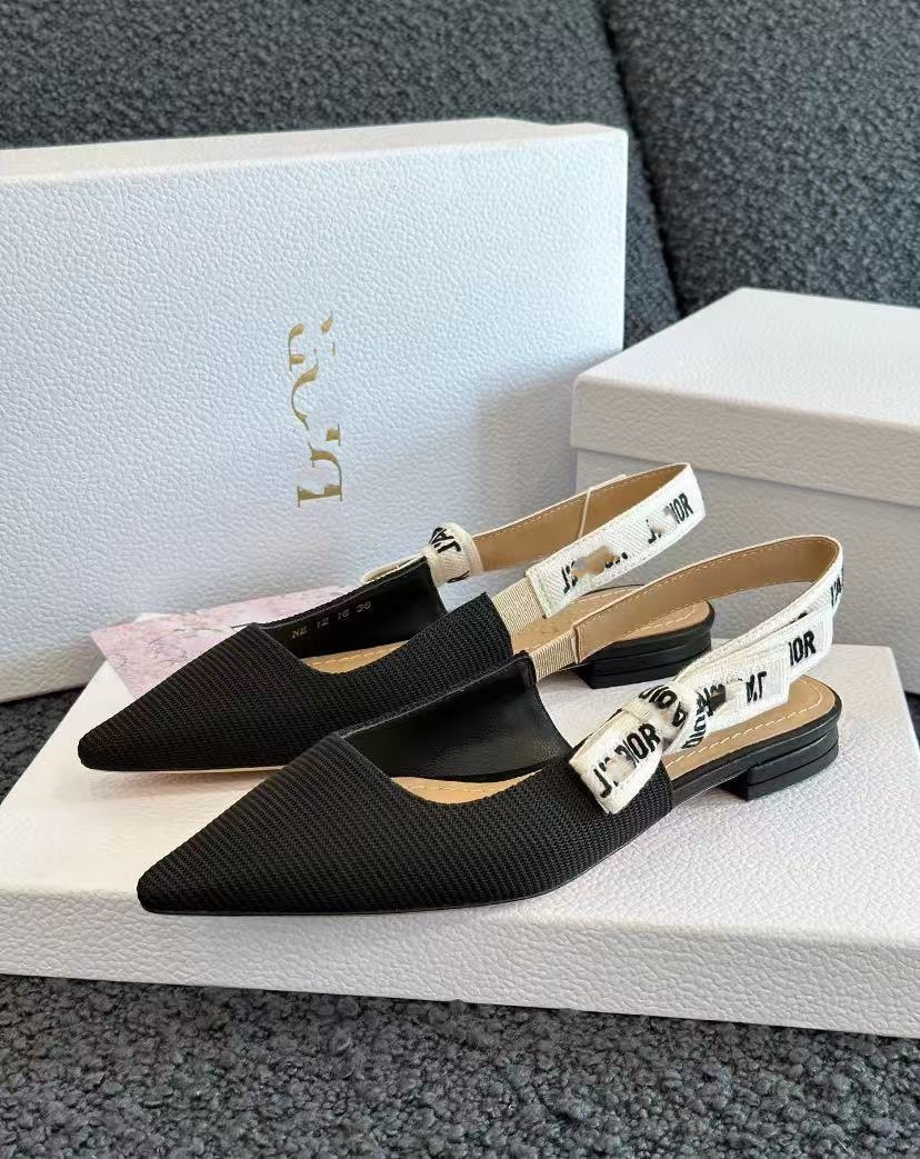 D의 새로운 스타일의 여성용 리본 고양이 굽 하이힐, 여성용 캐주얼 니트 스트라이프 포인티드 토 백 샌들스토어 가기