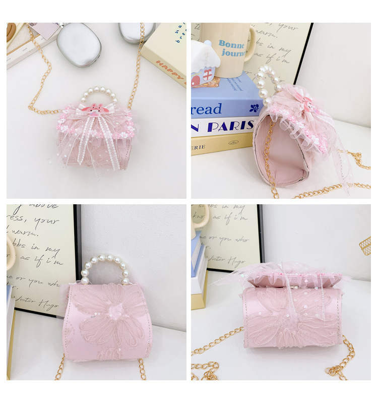 어린이 작은 향기로운 스타일 어깨 크로스 바디 가방 진주 소녀 작은 가방 새로운 어린 소녀 동전 지갑 핸드백 크로스 보더