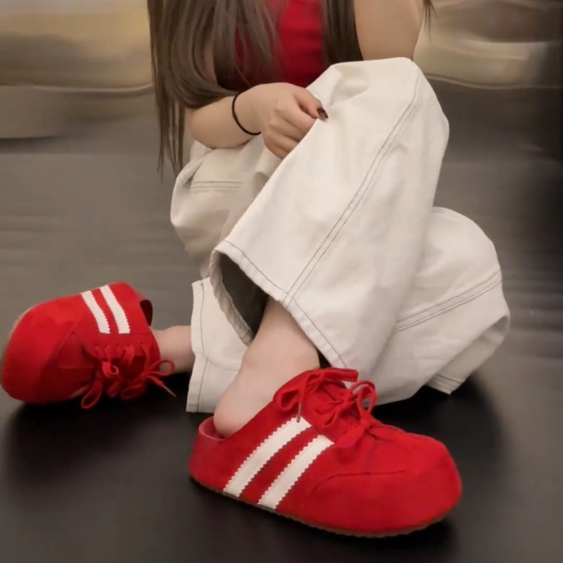두꺼운 밑창 굽 없는 게으른 신발 2025 신작 봄 복고풍 육군 훈련 신발 편안한 여성용 발가락 반 슬리퍼 여성용 겉옷