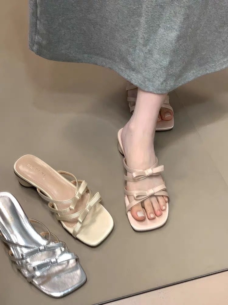 두꺼운 굽 나비 프렌치 샌들, 요정 신발, 2025 신상 여름 스커트 핑크 샌들스토어 가기