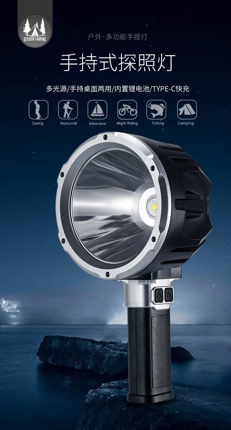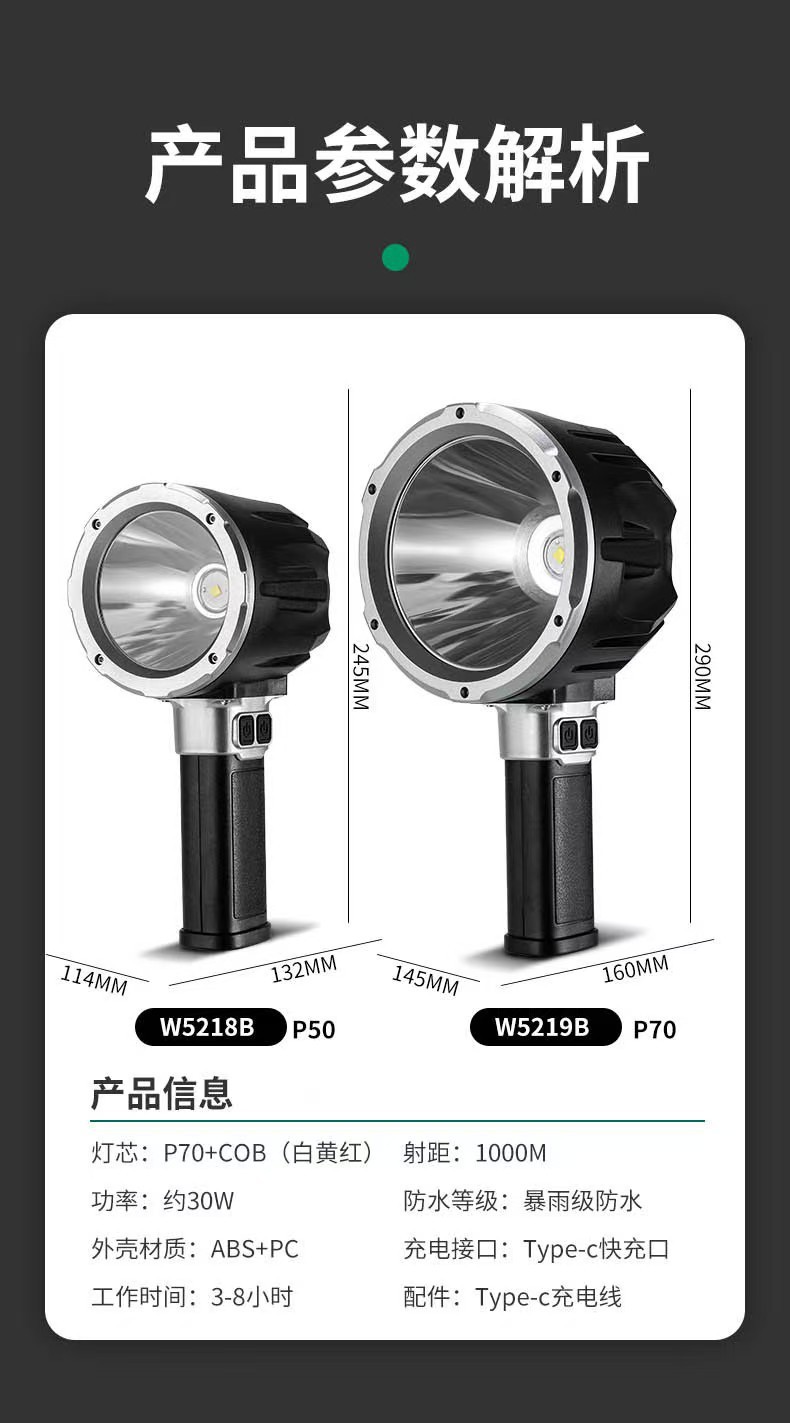 강력한 조명 충전, 고출력 및 긴 배터리 수명을 갖춘 새로운 전면 및 후면 듀얼 램프 수리 휴대용 서치라이트 비상 손전등