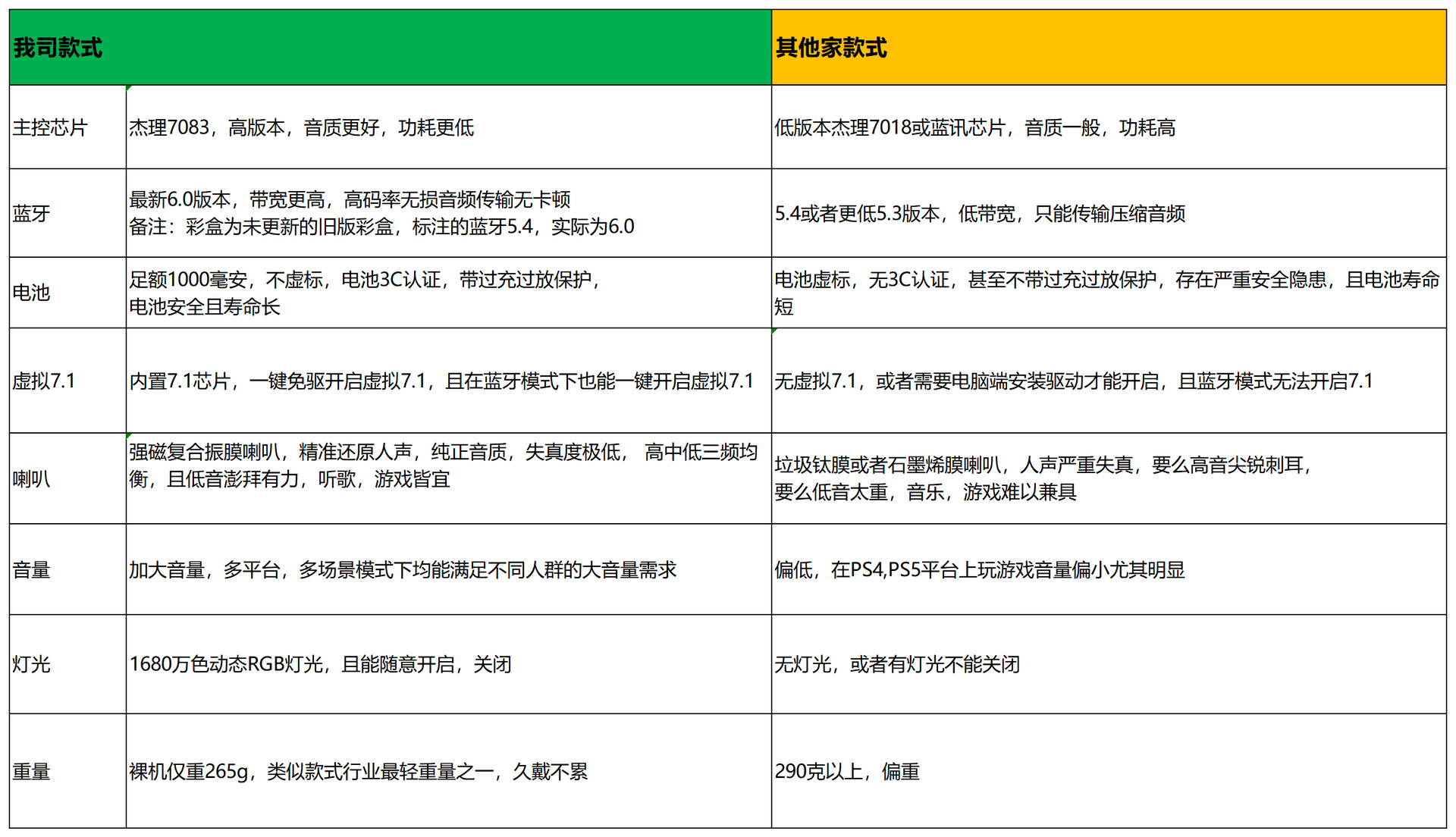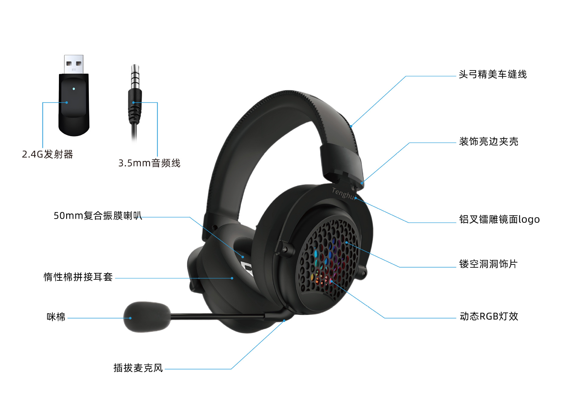 功能:2.4G无线+蓝牙+ 3.5mm有线+虚拟7.1音效,