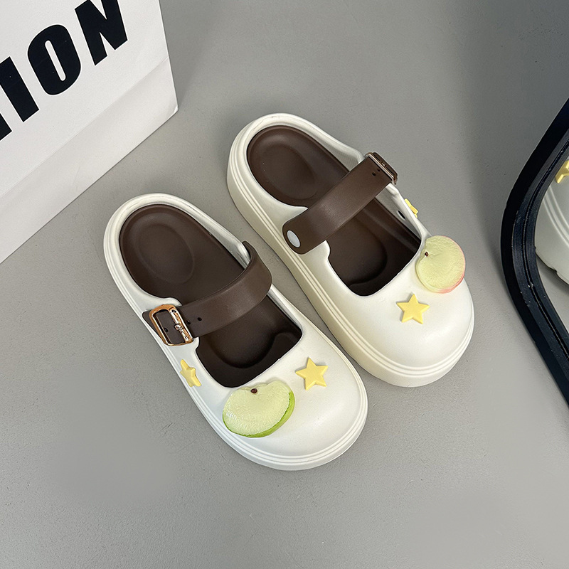 봄 여름 여성용 바오터우 버켄슈즈, 인터넷 연예인, 귀여운 강아지, 실내 및 가정용 두꺼운 밑창 샌들