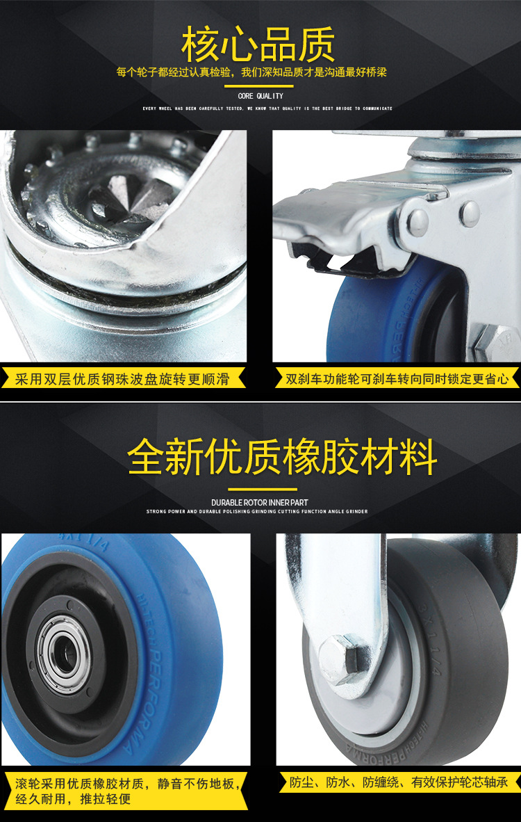 • 4inch 파란색 고무 탄성 브레이크 휠