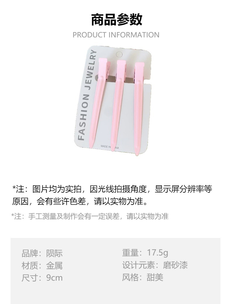 여성용 메이크업 및 세안용 무봉제 클립 3개 세트, 금속 포지셔닝 뾰족한 덕빌 클립 헤어 액세서리