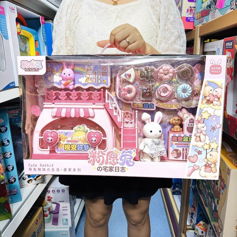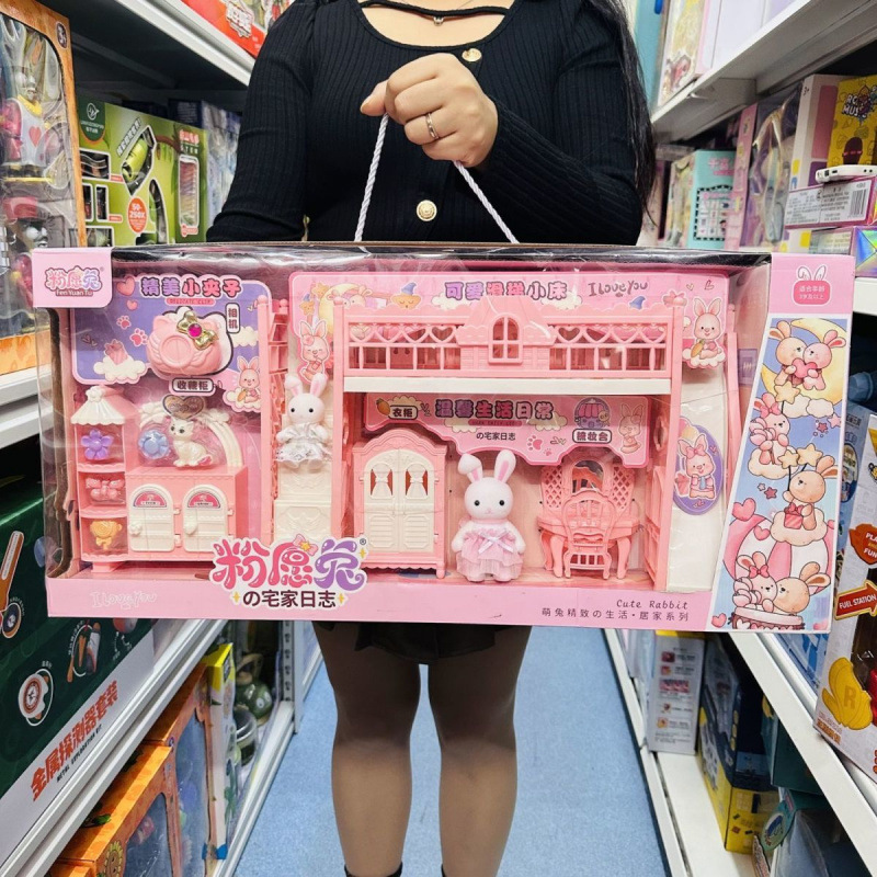 핑크 토끼 토끼 대형 성 빌라 따뜻한 침실 이층 침대 공주 집 소녀 놀이 집 어린이 장난감스토어 가기