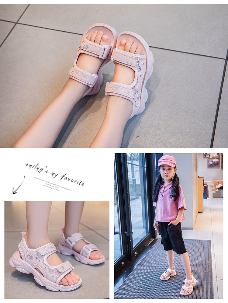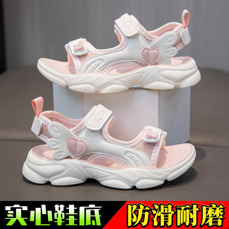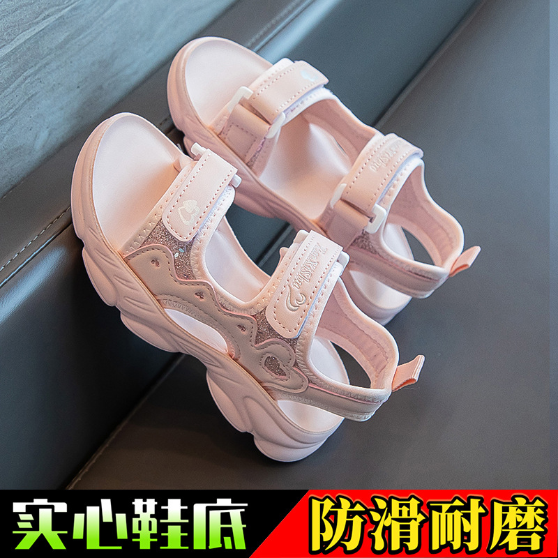 어린이 샌들 여름 소녀 해변 신발 2025 새로운 인터넷 연예인 소녀 공주 신발 미끄럼 방지 부드러운 바닥 유행 어린이 신발스토어 가기