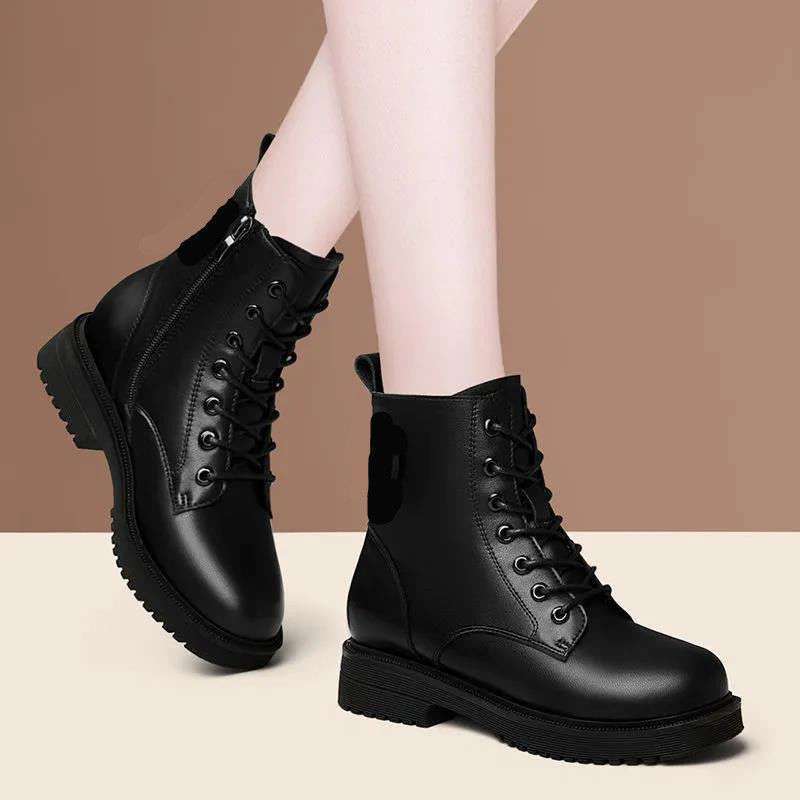 여성용 진짜 부드러운 가죽 마틴 부츠, 벨벳 미드 힐, 겨울 새 스타일 신발, 여성용 면화, 플랫 바닥, 두꺼운 굽, 두꺼운 밑창, 영국 스타일 숏부츠스토어 가기