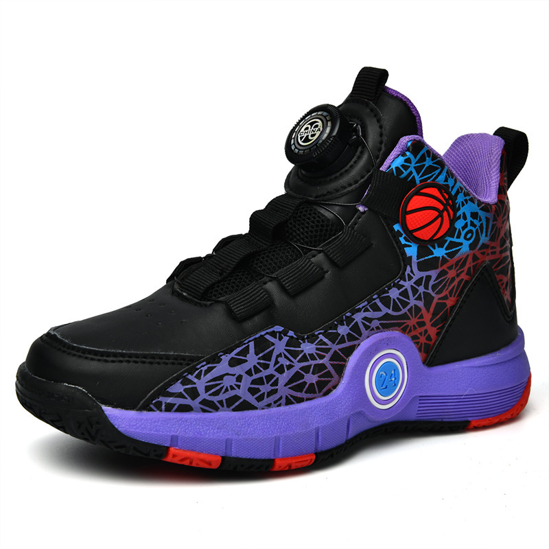 소년 농구 신발 2023 새로운 가죽 방수 회전 버튼 부드러운 바닥 중형 및 대형 어린이 운동화 캐주얼 미끄럼 방지 유행