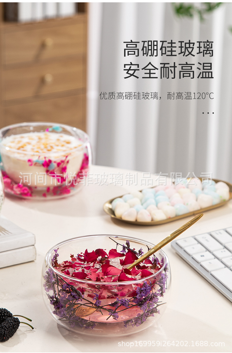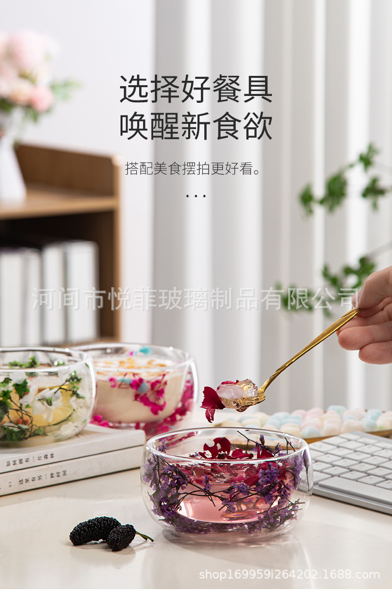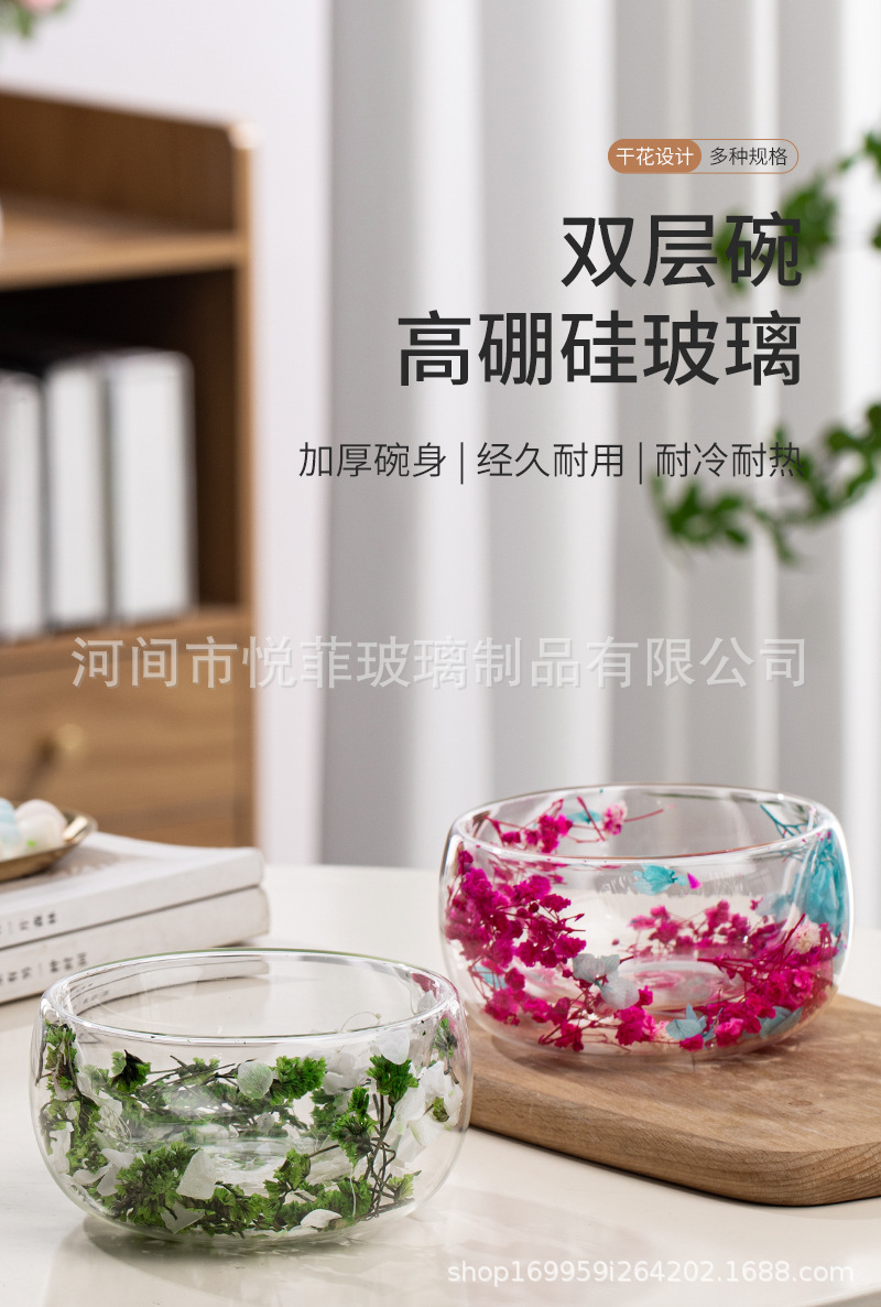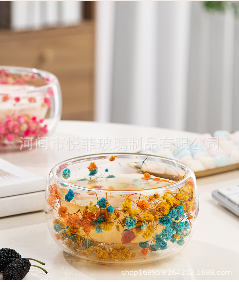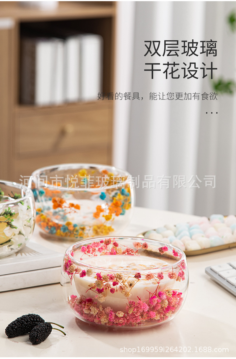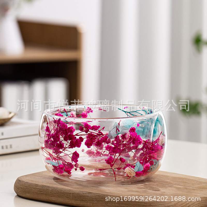 국경 간 신제품 말린 꽃 유리 그릇 이중층 절연 diy 디저트 그릇 과일 및 야채 샐러드 그릇 두꺼운 국수 그릇스토어 가기