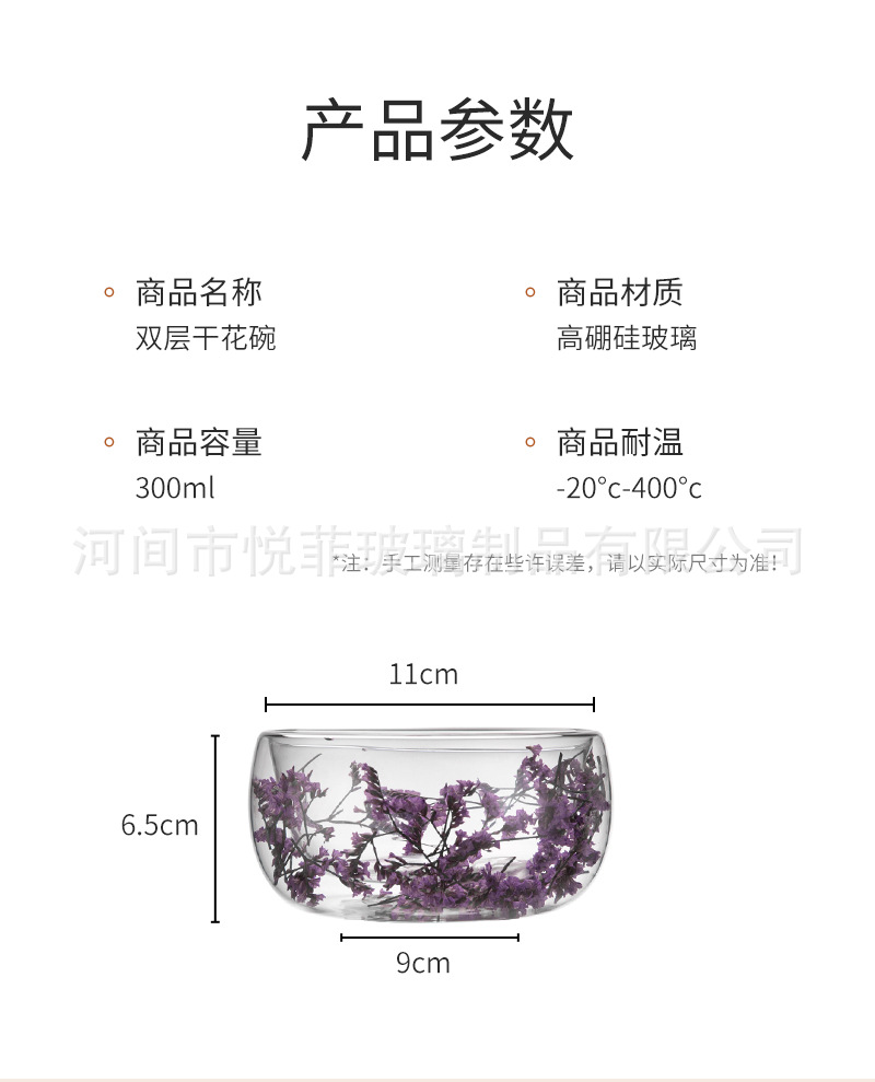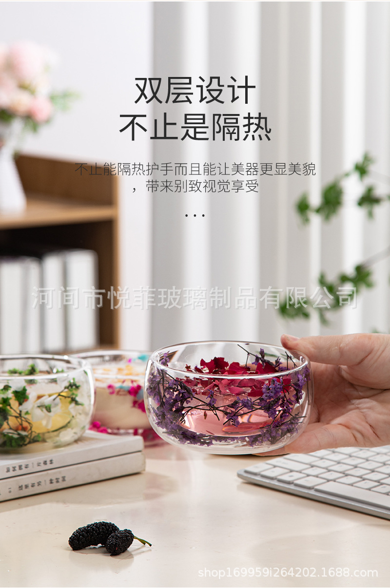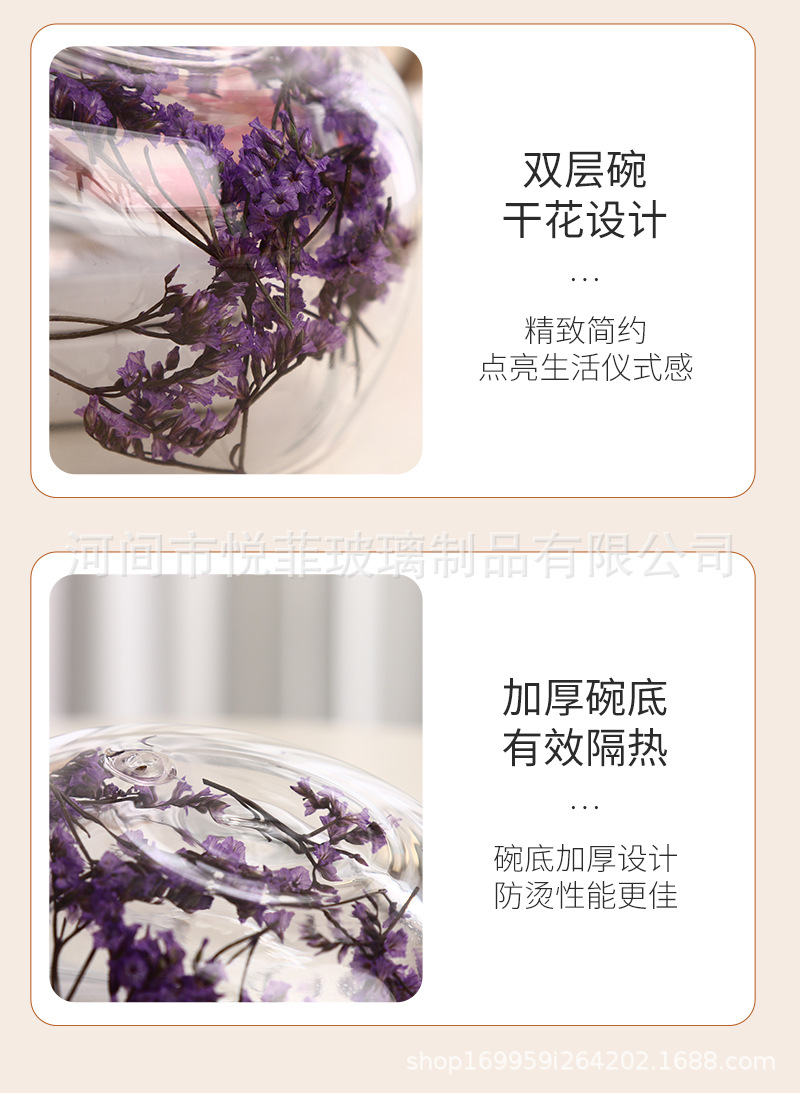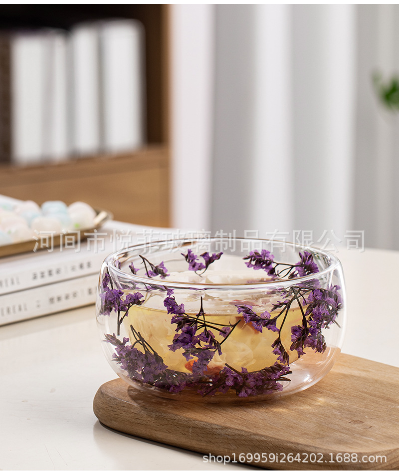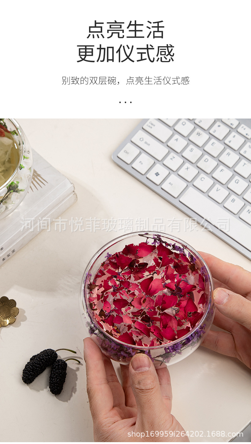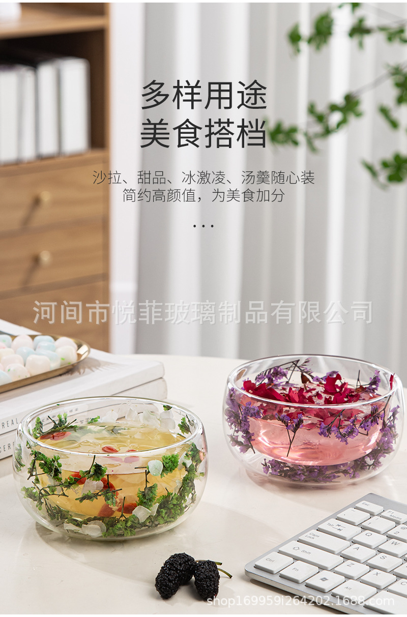 국경 간 신제품 말린 꽃 유리 그릇 이중층 절연 diy 디저트 그릇 과일 및 야채 샐러드 그릇 두꺼운 국수 그릇스토어 가기
