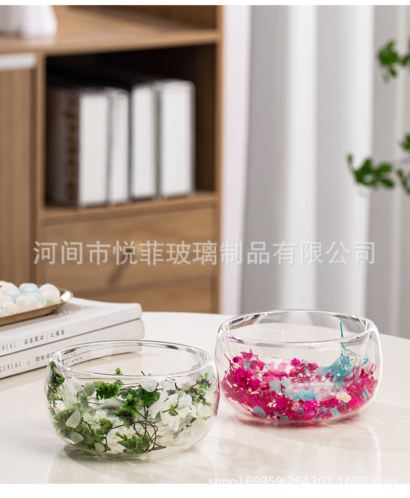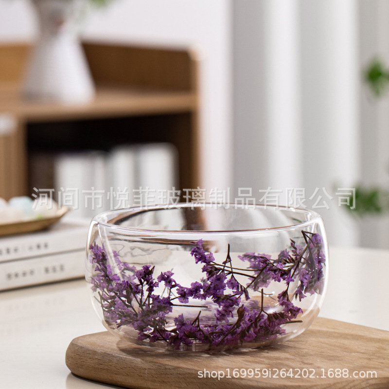 국경 간 신제품 말린 꽃 유리 그릇 이중층 절연 diy 디저트 그릇 과일 및 야채 샐러드 그릇 두꺼운 국수 그릇