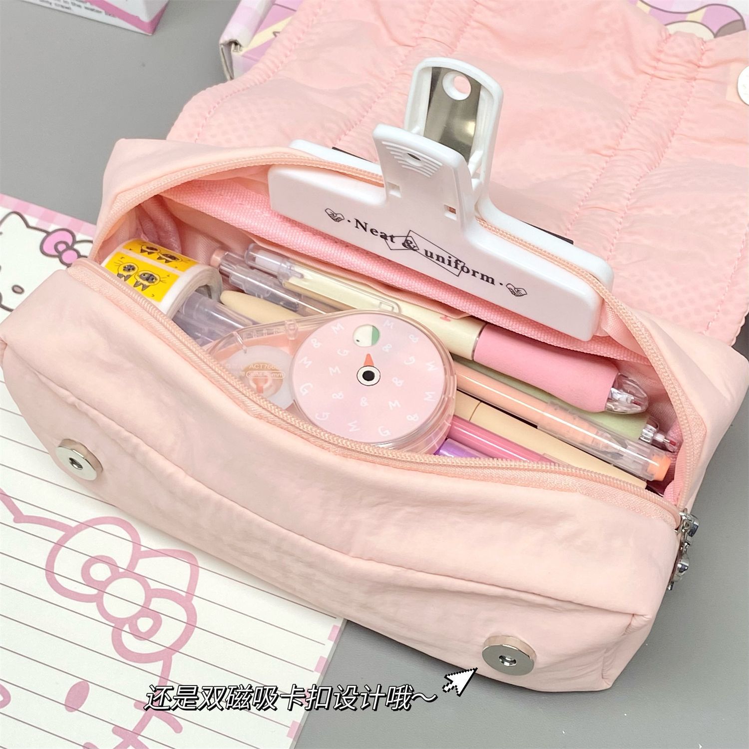 Ins 고급스러운 인기 단색 부드러운 당김 활 연필 가방 초대형 용량 학생 문구 보관 가방