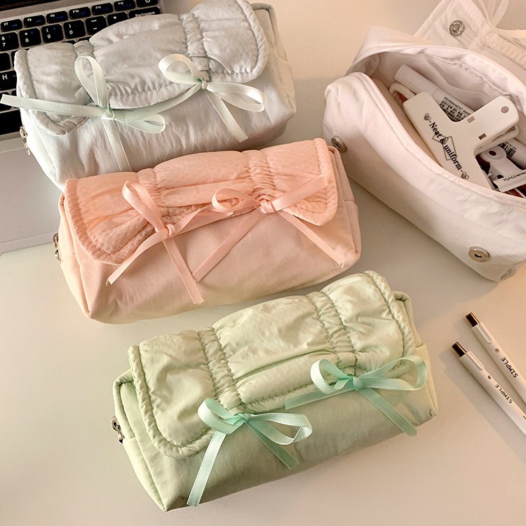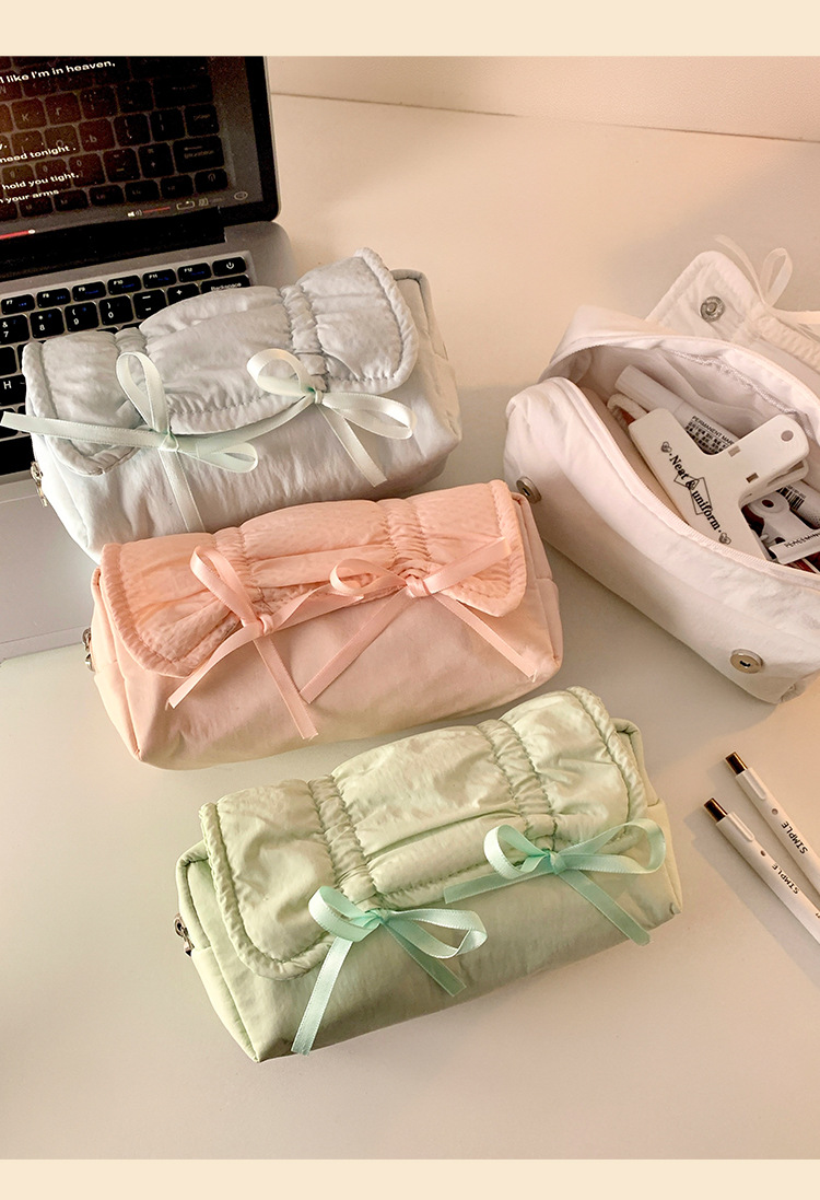Ins 고급스러운 인기 단색 부드러운 당김 활 연필 가방 초대형 용량 학생 문구 보관 가방스토어 가기