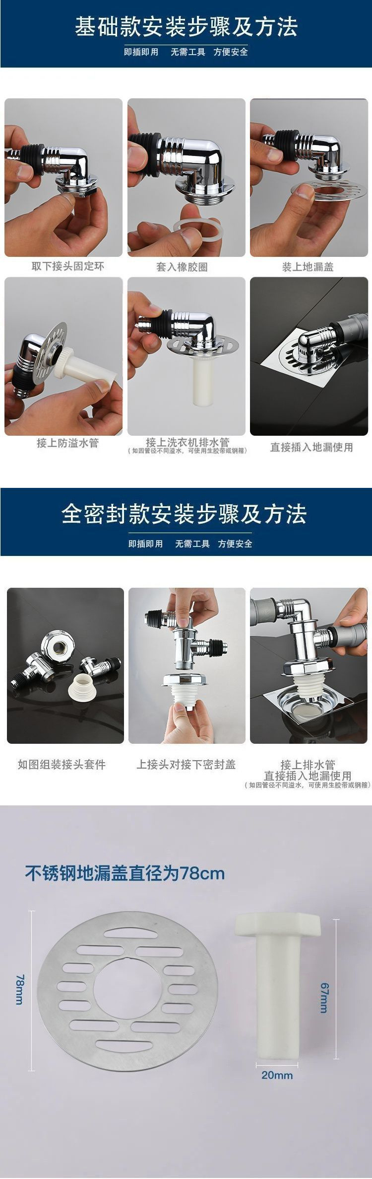 세탁기 하수구 및 바닥 배수구용 특수 커넥터, 배수관 하수구 3구 커버, 이중 목적 탈취 및 오버플로 방지