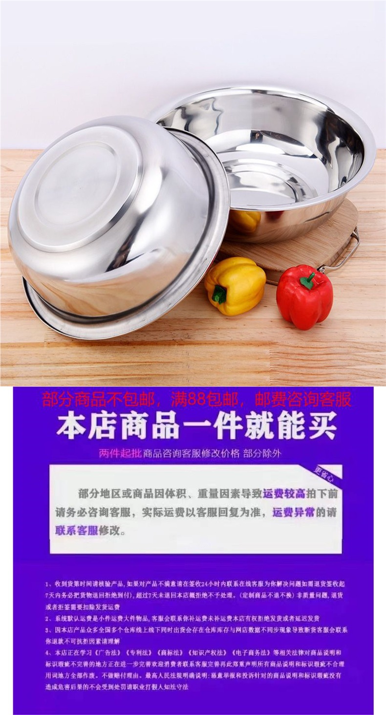 식품등급 스테인리스 스틸 그릇, 가정용 주방 계란 및 국수 세척 그릇, 베이킹 대형 그릇, 두꺼운 수프 그릇 주의사항스토어 가기