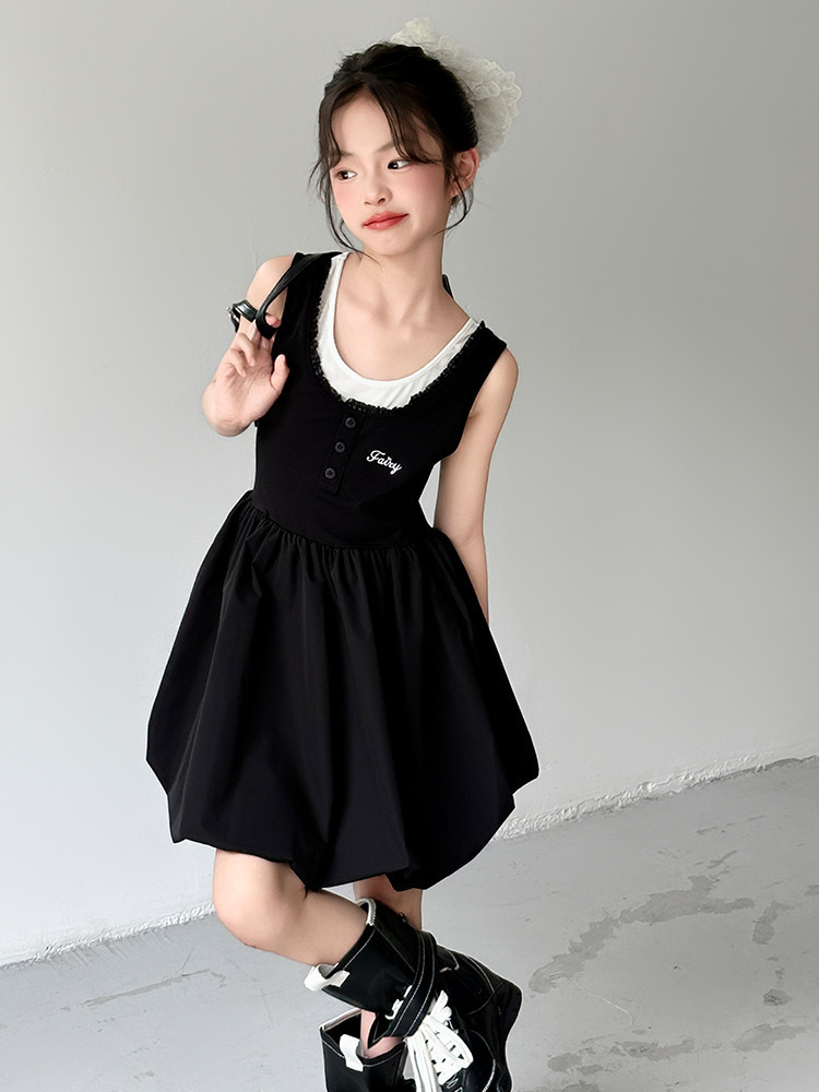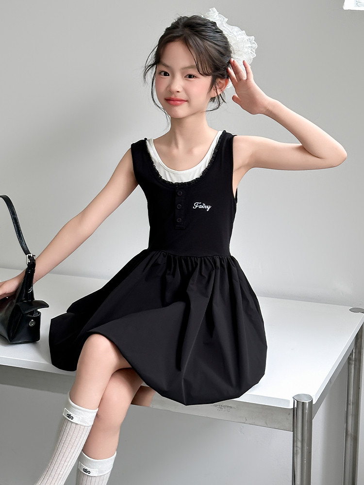 여자 드레스 여름 2025 새로운 여자 여름 스타일 공주 꽃 스커트 어린이 여름 민소매 드레스